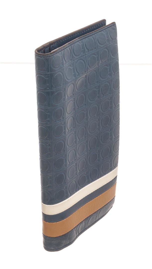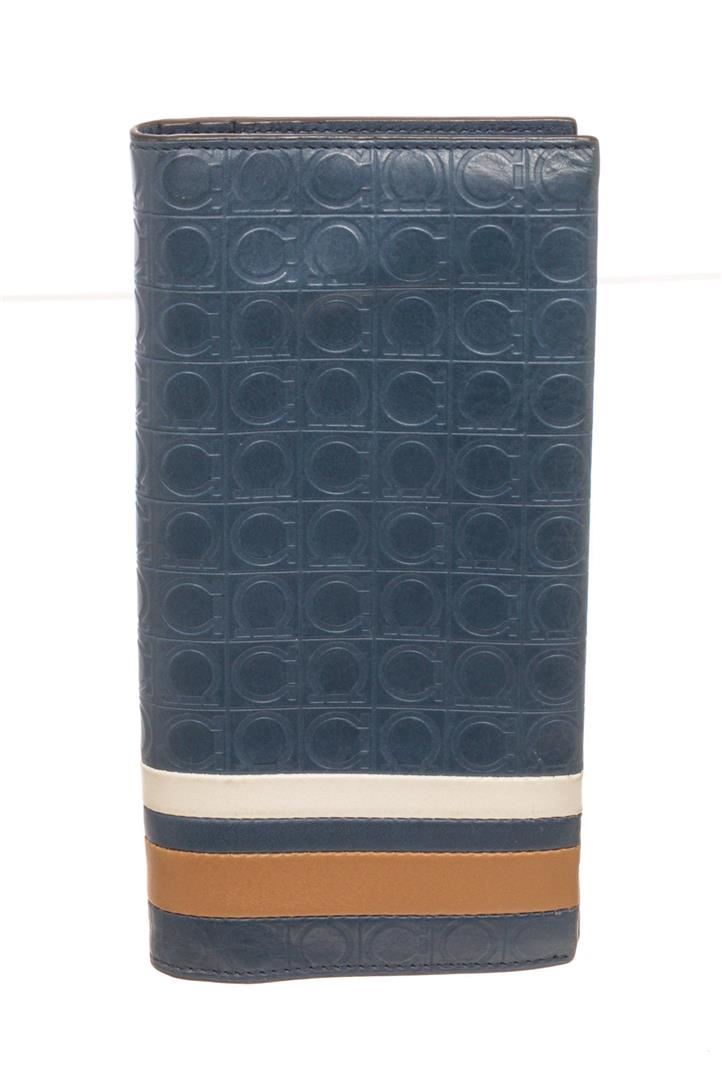 Ferragamo Blue Leather Continental Wallet with silver-tone hardware, leather lining interior pocket bifold closure.