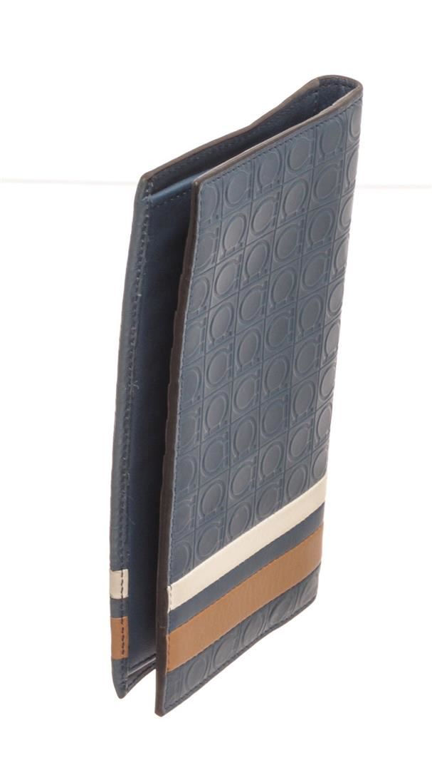 One Ferragamo Blue Leather Continental Wallet. Item is sold AS-IS. Please check photos and descriptions for all available details. Ferragamo Blue Leather Continental Wallet with leather lining & interior pocket bifold closure.