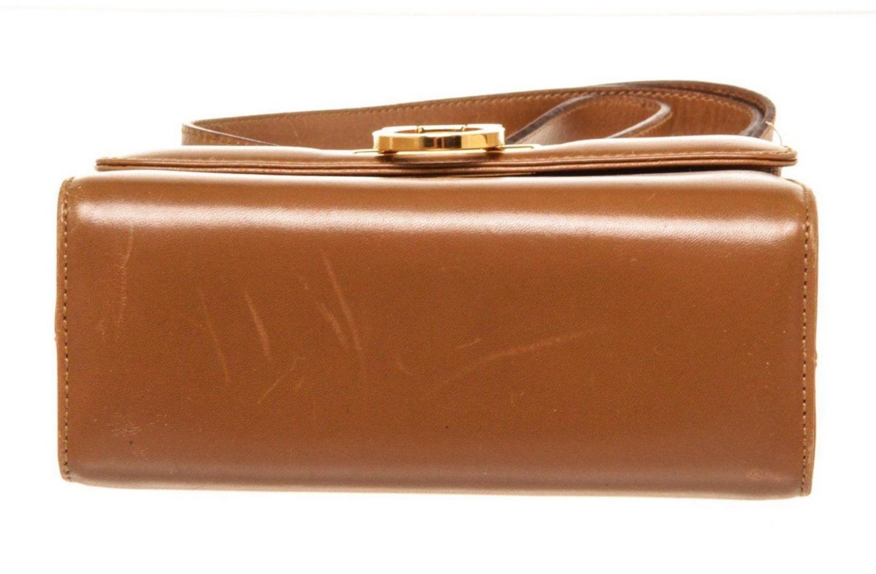 Ferragamo Caramel Leather Calf Shoulder Bag with material leather, silver-tone hardware, single shoulder straps, turn-lock closure at front closure.