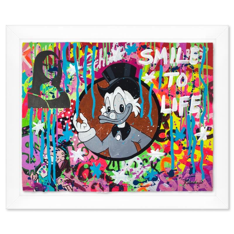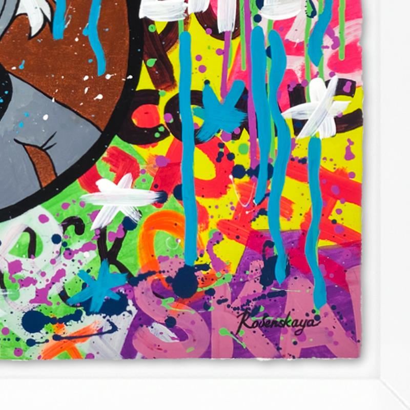 "Fifty Cent" is a one-of-a-kind mixed media on deckle edge paper by Nastya Rovenskaya, Hand signed by the artist. This piece comes floating in a custom frame. Includes Letter of Authenticity. Measures approximately 28" x 34" (framed), 24" x 30" (image). This item requires special handling and may have a longer than usual turnaround.