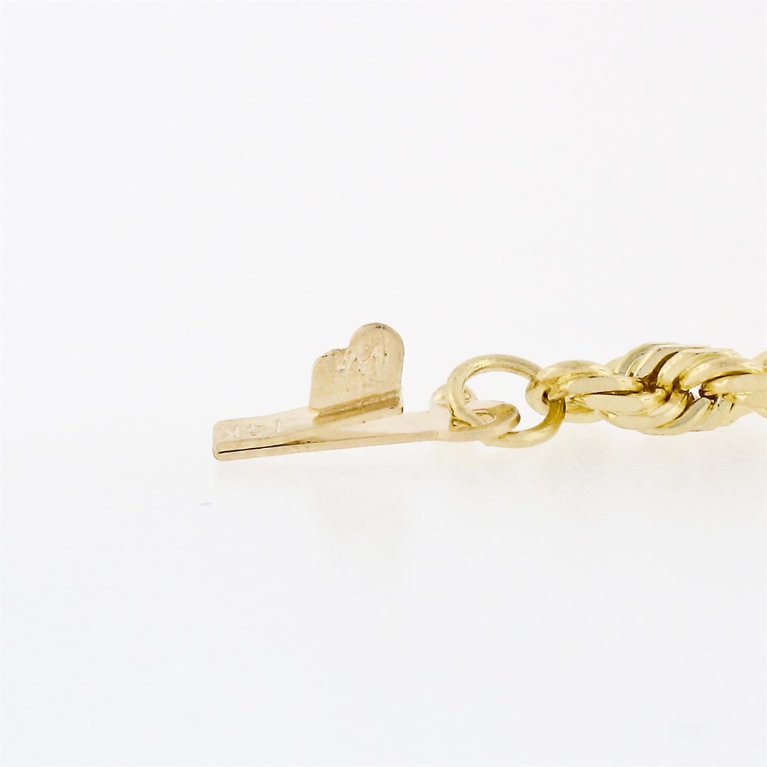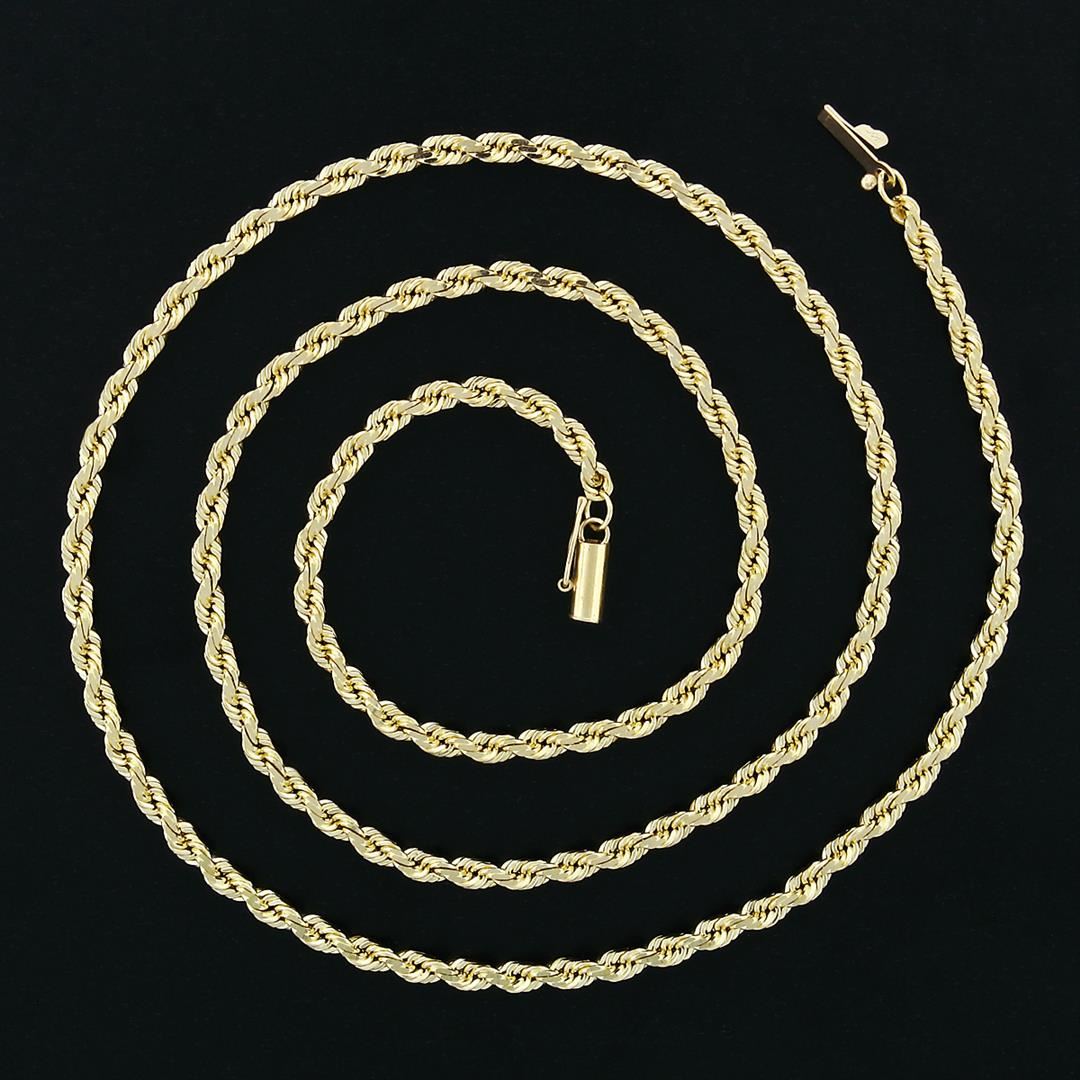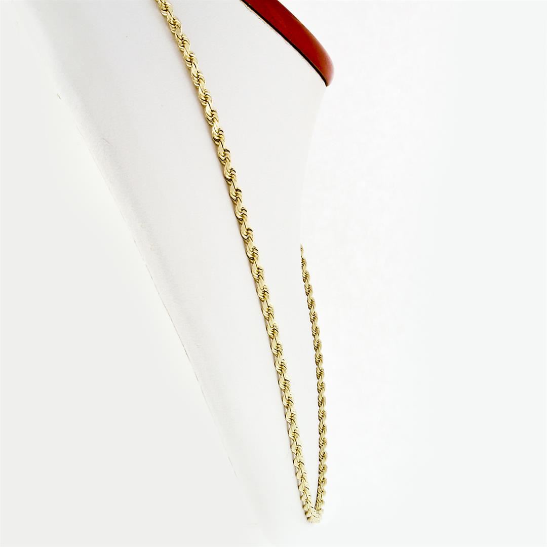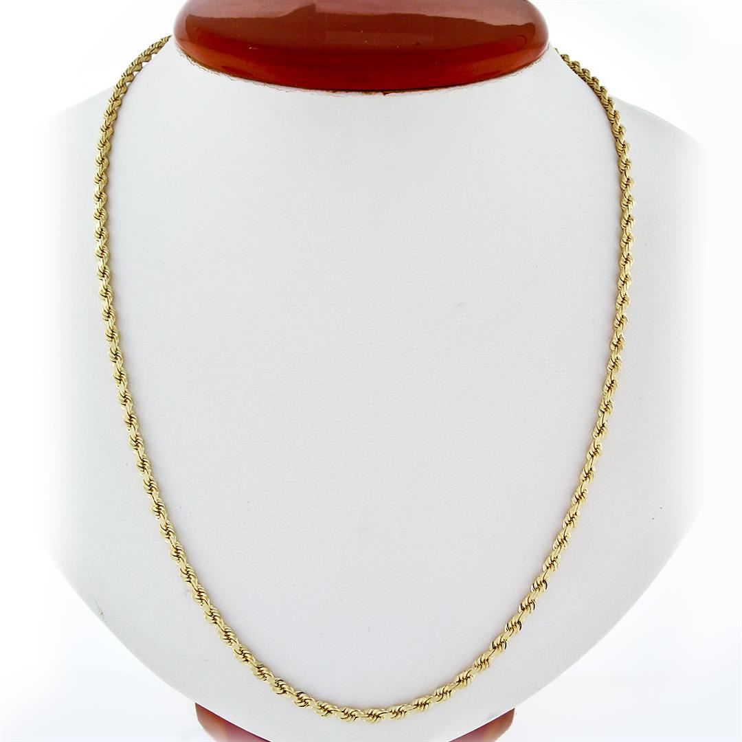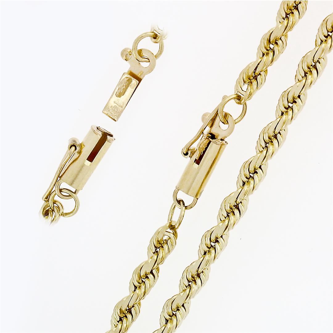 A fine solid 14k yellow gold Rope link chain necklace. It weighs a total of 17.64grams, measures 2.5mm in thickness, and measures 22 inches in length.