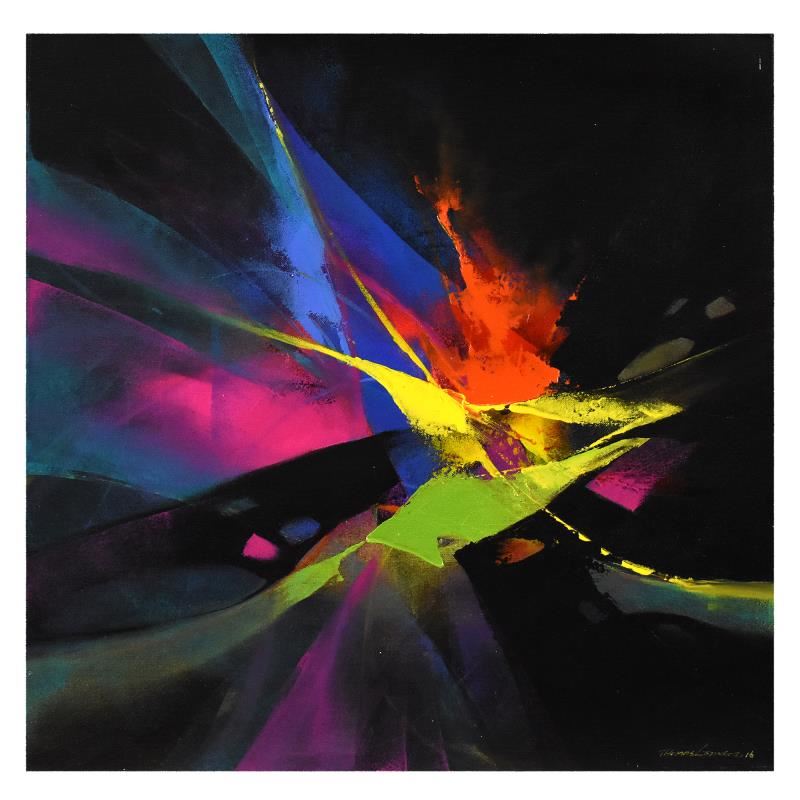 "Fireworks" is an original acrylic painting on canvas by Thomas Leung, hand signed by the artist. Includes Letter of Authenticity. Measures approx. 24" x 24" (image).