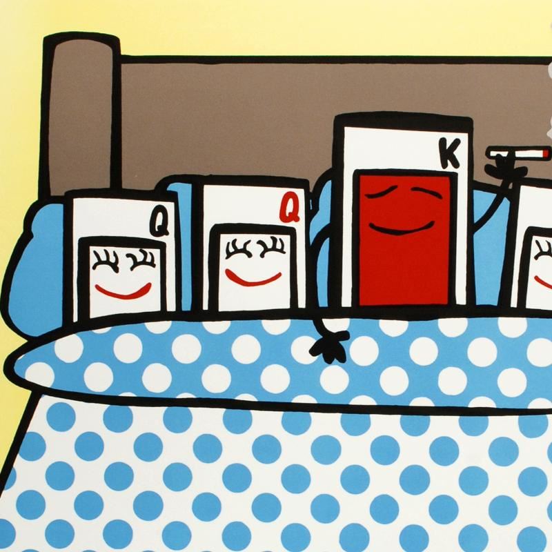 Pop artist Todd Goldman is known all across the globe for his whip-smart and wickedly funny puns and pictures! "Five Card Stud" is a limited edition lithograph on paper, numbered and hand signed by Todd. Includes Certificate of Authenticity! Measures approx. 30.5" x 22.5" (no border). Please allow 5 additional business for items that include canvas stretch or framing.