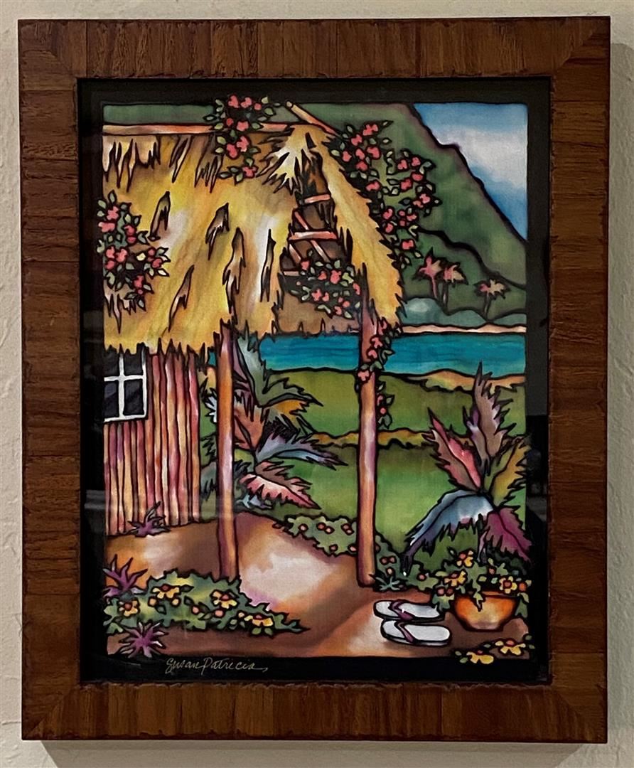"Flip Flops" is a charming framed original on silk w/added texture effect, UF 14x11", and measures 13.25x16.25"in the frame