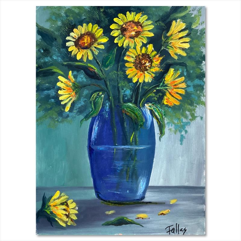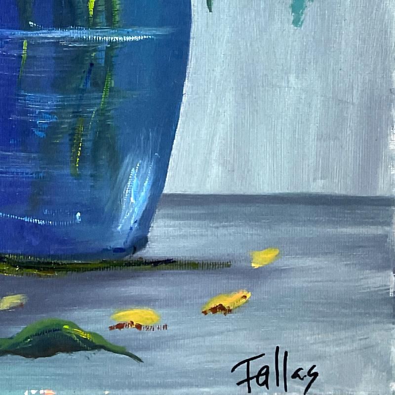 Floral By Fallas Original. "Floral" is an original oil painting on canvas by Elliot Fallas, hand signed by the artist. This piece comes gallery wrapped. Includes Letter of Authenticity. Measures approx. 12" x 16" (image). The sides of the canvas are painted and it can be hung as is, but a frame is definitely recommended.