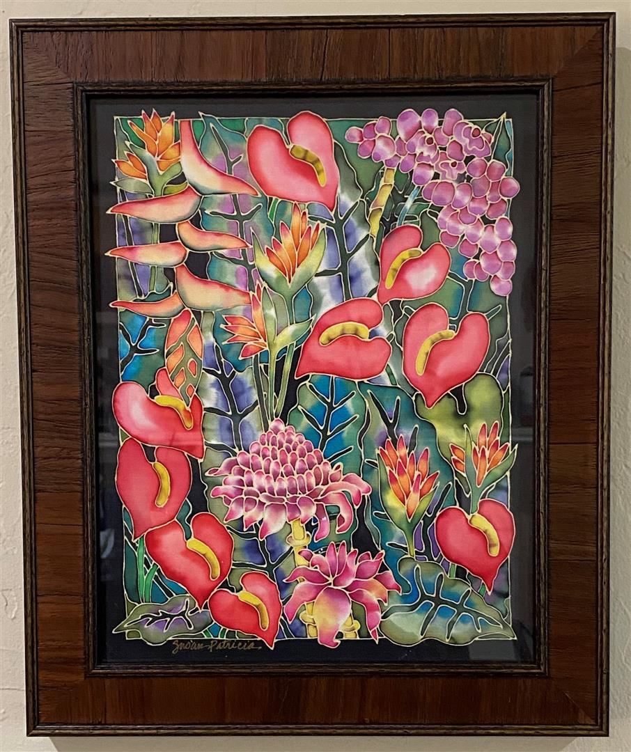 "Floral" is a beautiful framed original on silk by Susan Patricia. It is 14x11" UF, and measures 14x17"in the frame