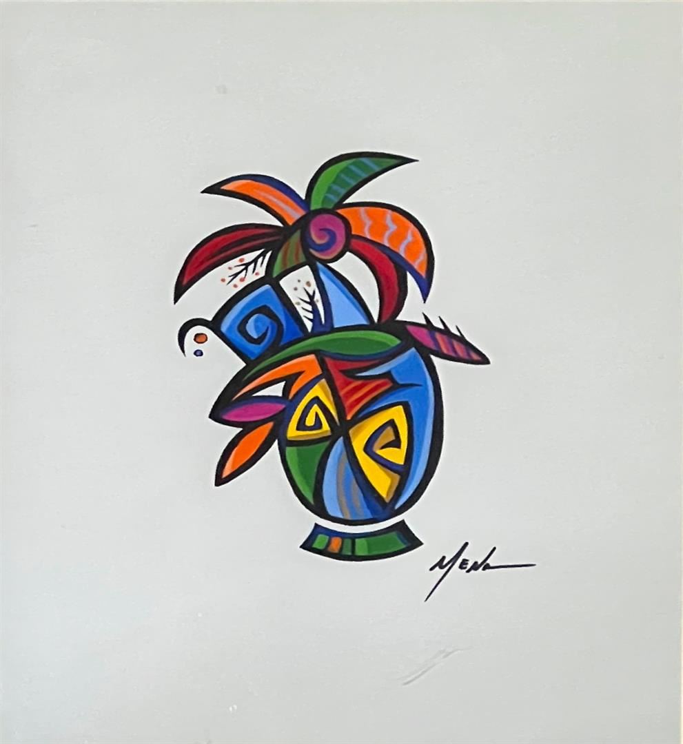 Flower II by Guido, Mena. Original One-of-a-Kind Hand Signed Ink Drawing Framed. Frame Good. Dimensions: 11.5 x 8.5. Excellent Condition.