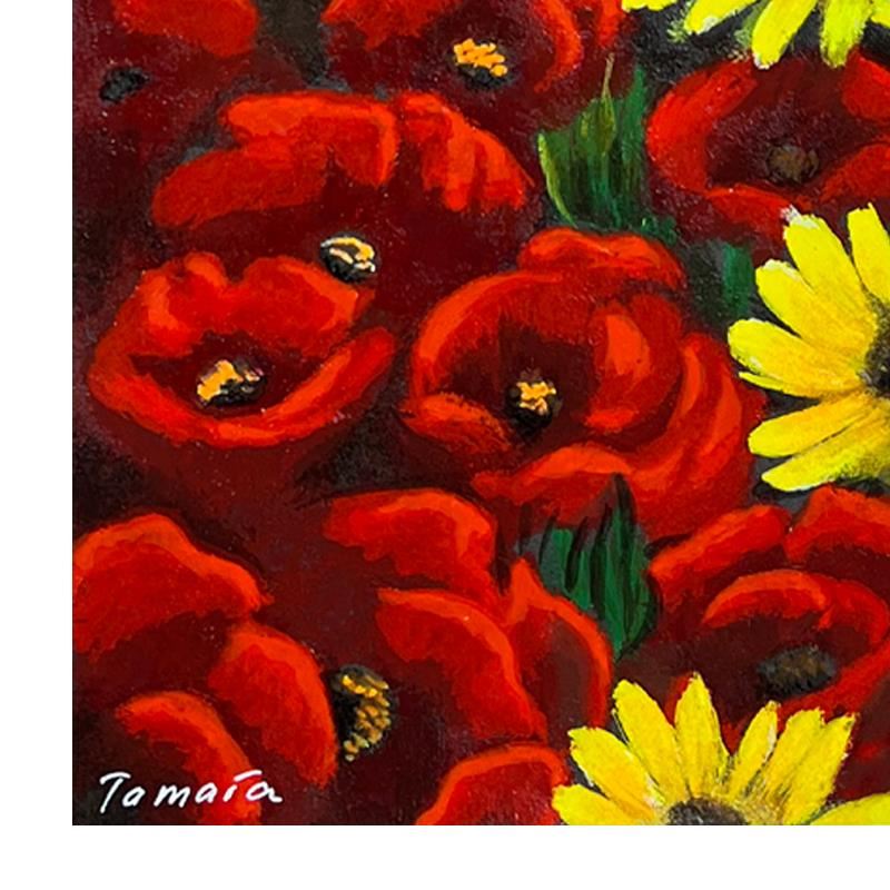 Flower Landscape II is a limited edition serigraph on paper by Tamara Spolianski. The piece comes hand signed by the artist, numbered, and with a letter of authenticity. Measures approximately 25.5 x 8.5.