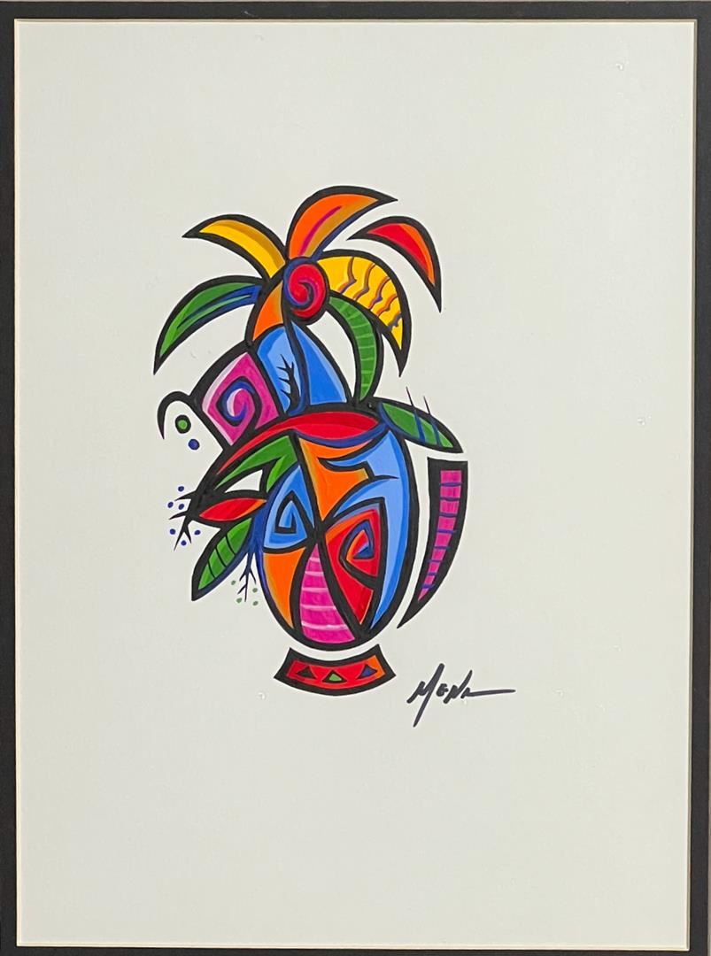 Flower Vase Study IV by Guido, Mena. Original One-of-a-Kind Hand Signed Ink Drawing Framed. Frame Good. Dimensions: 11.5 x 8.5. Excellent Condition.