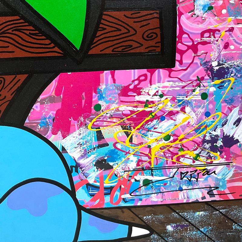 "Flower to You" is a unique mixed media acrylic on gallery wrapped canvas by Jozza. Hand Signed by the artist and titled in verso, the piece comes with a letter of authenticity. Measures approximately 48" x 40" (image).