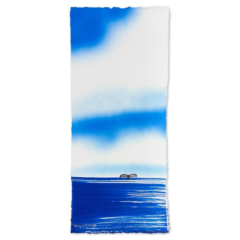 "Fluke" is an original painting acrylic on deckle edge paper by Wyland. Hand signed by the artist, the piece comes custom framed and with a letter of authenticity. Measures approximately 26.5" x 14.5" (framed), 22.5" x 10.5" (image). This item requires special handling and may have a longer than usual turnaround