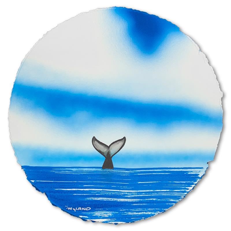 "Fluke" is an original painting, watercolor on deckle edge paper by Wyland. Hand signed by the artist, the piece comes custom framed and with a letter of authenticity. Measures approximately 30" x 30" (framed), 19.5" x 19.5" (image).