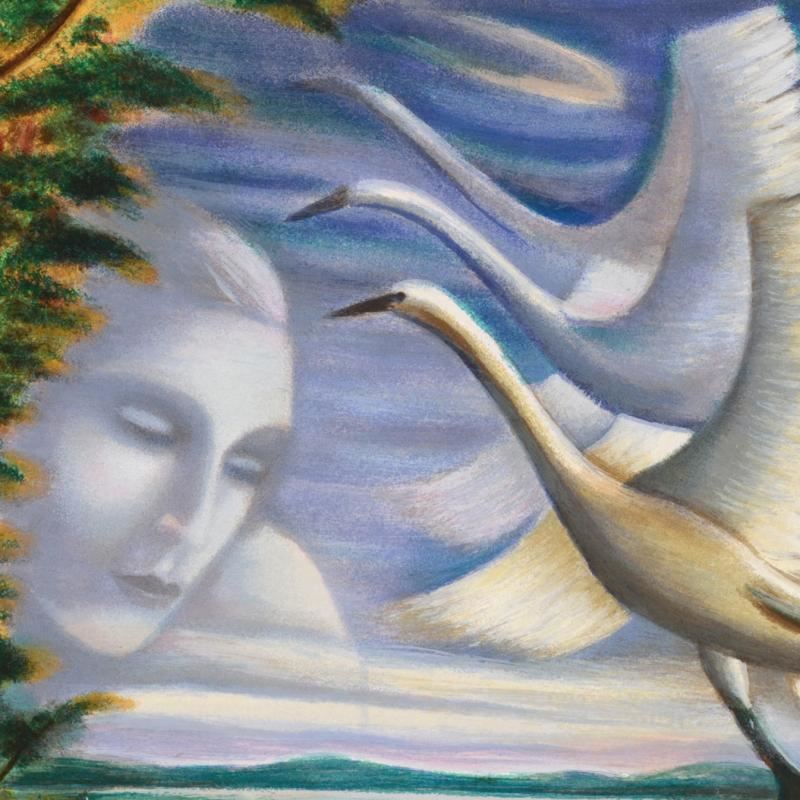 "Fly Away" is a limited edition serigraph on paper, numbered and hand signed by Rina Sutzkever! Includes Certificate of Authenticity! Measures approx. 19" x 14" (with border); 18.5" x 13.5" (image).