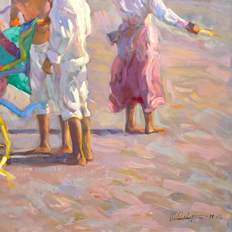 "Flying Kites" is a limited edition printer's proof on stretched canvas by Don Hatfield, numbered 11/11 and hand signed by the artist. Includes Letter of Authenticity. Measures approx. 24" x 32" (image). ** Please note: There is noticeable depression around the perimeter of the image where the stretch bars beet the canvas. We recommend the piece be re-stretched and framed.