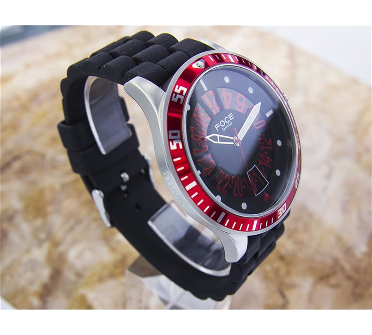 Foce Sportclub F806Gsl Stainless Steel Quartz Watch. Brand: FOCE. Model: SportClub. Movement: Quartz. Case Material: Stainless Steel. Crystal: SAPPHIRE. Case Size: 55X50. Band: ORIGINAL RUBBER BAND.