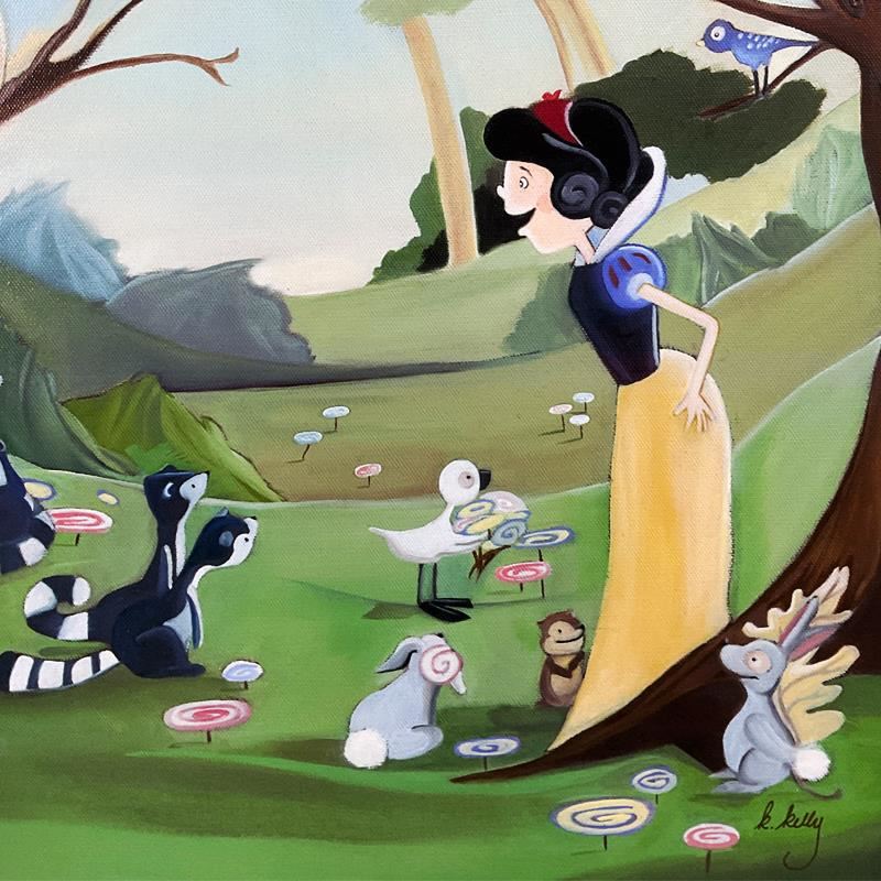 "Forest Friends" is a limited edition giclee on canvas by Katie Kelly, numbered and hand signed by the artist. This piece comes framed. This piece is licensed by Disney Fine Art. Includes Letter of Authenticity. Measures approx. 31" x 25" (frame), 23.5" x 17.5" (image). There may be very minor wear on the corners but the piece is in good condition.