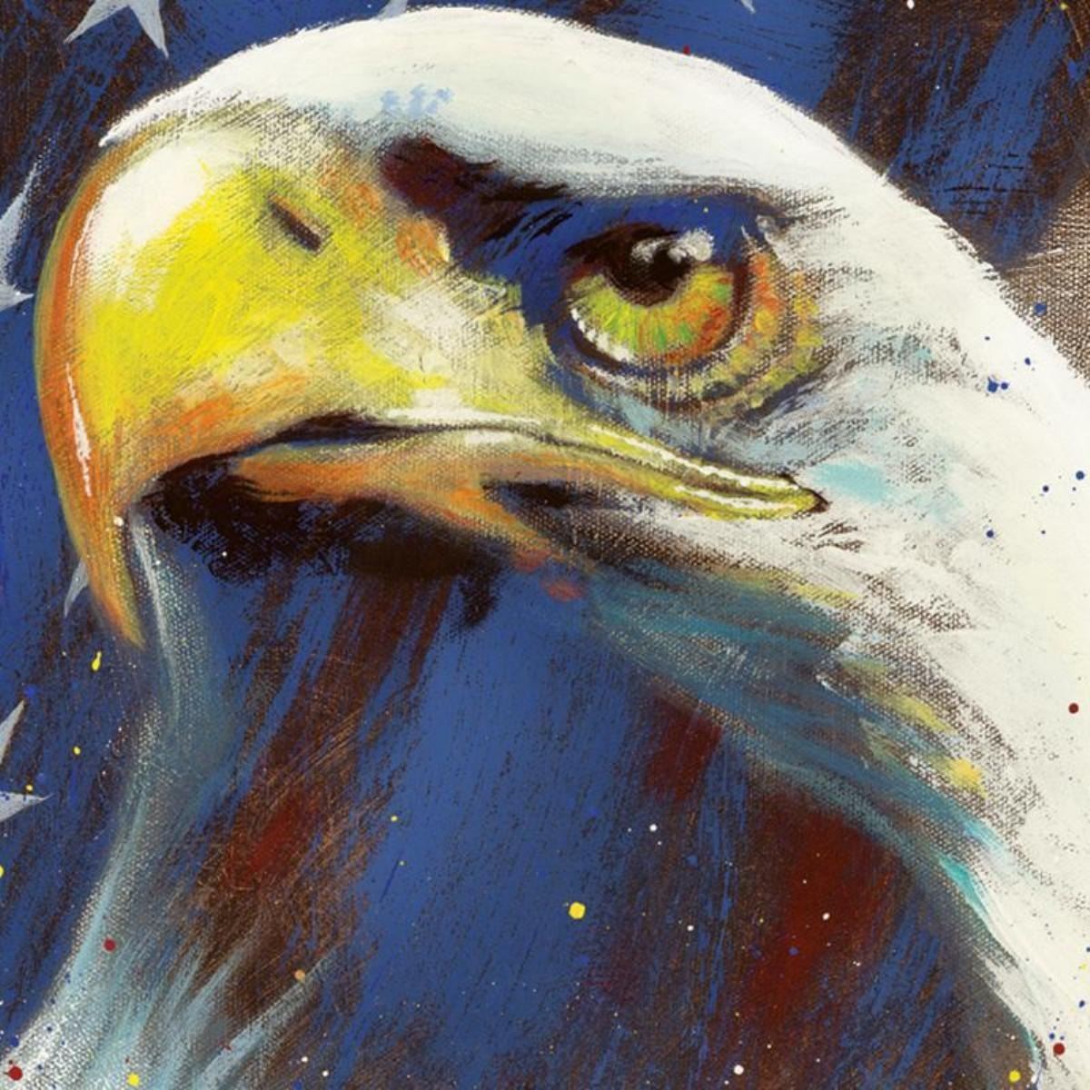 With bright colors and expressive lines, Stephen Fishwick puts a unique spin on pop culture portraits. "Formatted America" is a limited edition giclee on stretched canvas, numbered and bears the artist's authorized signature. This piece comes gallery wrapped! Includes Letter of Authenticity. Measures approx. 16" x 20" (image). This item requires special handling and may have a longer than usual turnaround.