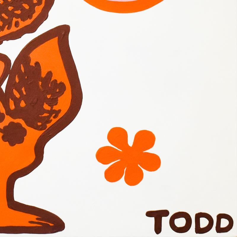 "Foxy" is an original acrylic painting on canvas by Todd Goldman, hand signed by the artist. This piece comes gallery wrapped. Includes Letter of Authenticity. Measures approx. 48" x 48" (image). Please note: There is wear on the corners and edges of this piece. This piece is available for free pickup in Los Angeles - contact for more info.