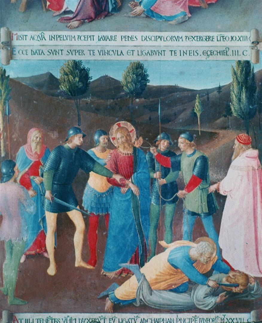 Artist: Fra Angelico - Title: Capture of Christ - Medium: Fine Art Giclee on Canvas - Image Size: Approximately 20 inches x 16.25 inches - Unframed on Unstretched Canvas - Biography: Fra Angelico (born Guido di Pietro; c. 1395 - February 18, 1455) was an Italian painter of the Early Renaissance, described by Vasari in his Lives of the Artists as having "a rare and perfect talent".He earned his reputation primarily for the series of frescoes he made for his own friary, San Marco, in Florence. In modern Italian he is called Beato Angelico (Blessed Angelic One); the common English name Fra Angelico means the "Angelic friar". In 1982, Pope John Paul II proclaimed his beatification in recognition of the holiness of his life, thereby making the title of "Blessed" official. He is listed in the Roman Martyrology as Beatus Ioannes Faesulanus, cognomento Angelicus--"Blessed Giovanni of Fiesole, surnamed 'the Angelic' ".