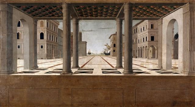 Artist: Francesco di Giorgio Martini - Title: Architectural Veduta - Medium: Fine Art Reproduction Giclee on Canvas - Image Size: Approximately 17.5 inches x 32 inches - Unframed on Unstretched Canvas - Biography: Francesco di Giorgio Martini was an Italian architect, engineer, painter, sculptor, and writer. As a painter, he belonged to the Sienese School. He was considered a visionary architectural theorist--in Nikolaus Pevsner's terms: "one of the most interesting later Quattrocento architects". As a military engineer, he executed architectural designs and sculptural projects and built almost seventy fortifications for the Federico da Montefeltro, Count of Urbino, building city walls and early examples of star-shaped fortifications.