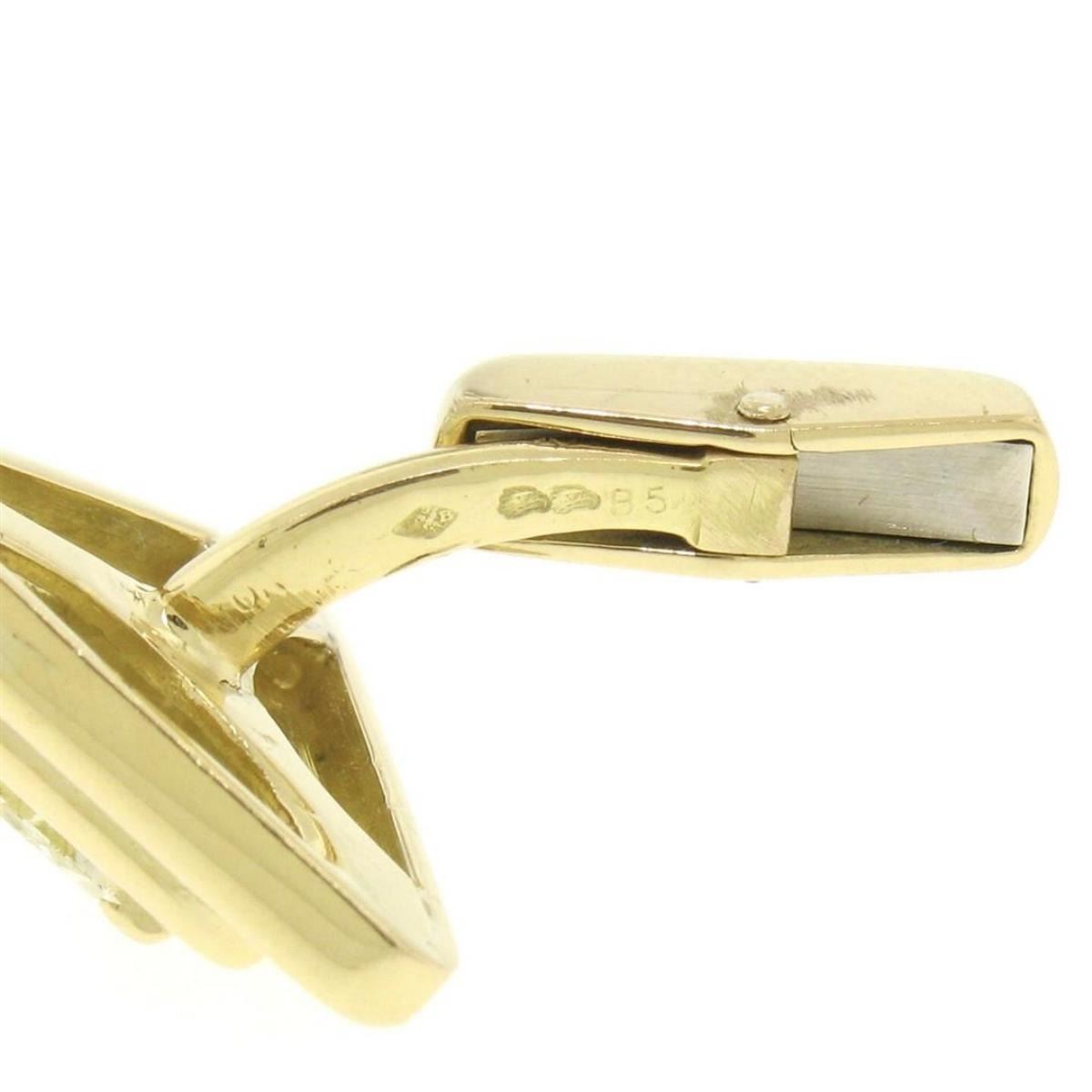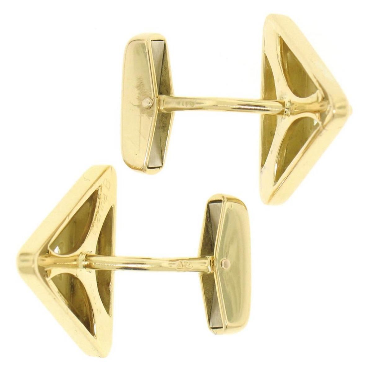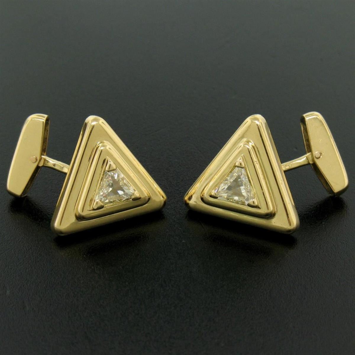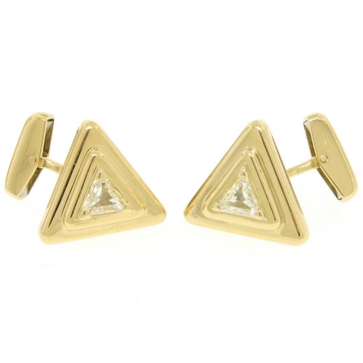 One Marina B French 18k Solid Yellow Gold 1.20 ctw FANCY Light Yellow Trillion Cut Diamond Cuff Links. Item Details: Material: 18k Solid Yellow Gold, Total Weight:15.0 Grams, Stones:(2) Natural Genuine Diamonds - Trillion Cut - Prong Set - FANCY Light Yellow Color - VS2 Clarity - 1.20 ctw (approx.), Overall Height: 25.32mm, Overall Width: 19.0mm, Backing: Swivel Backs, Cuff Clearance: 12.4mm, Signature(s): France Condition: Estate - Excellent condition!