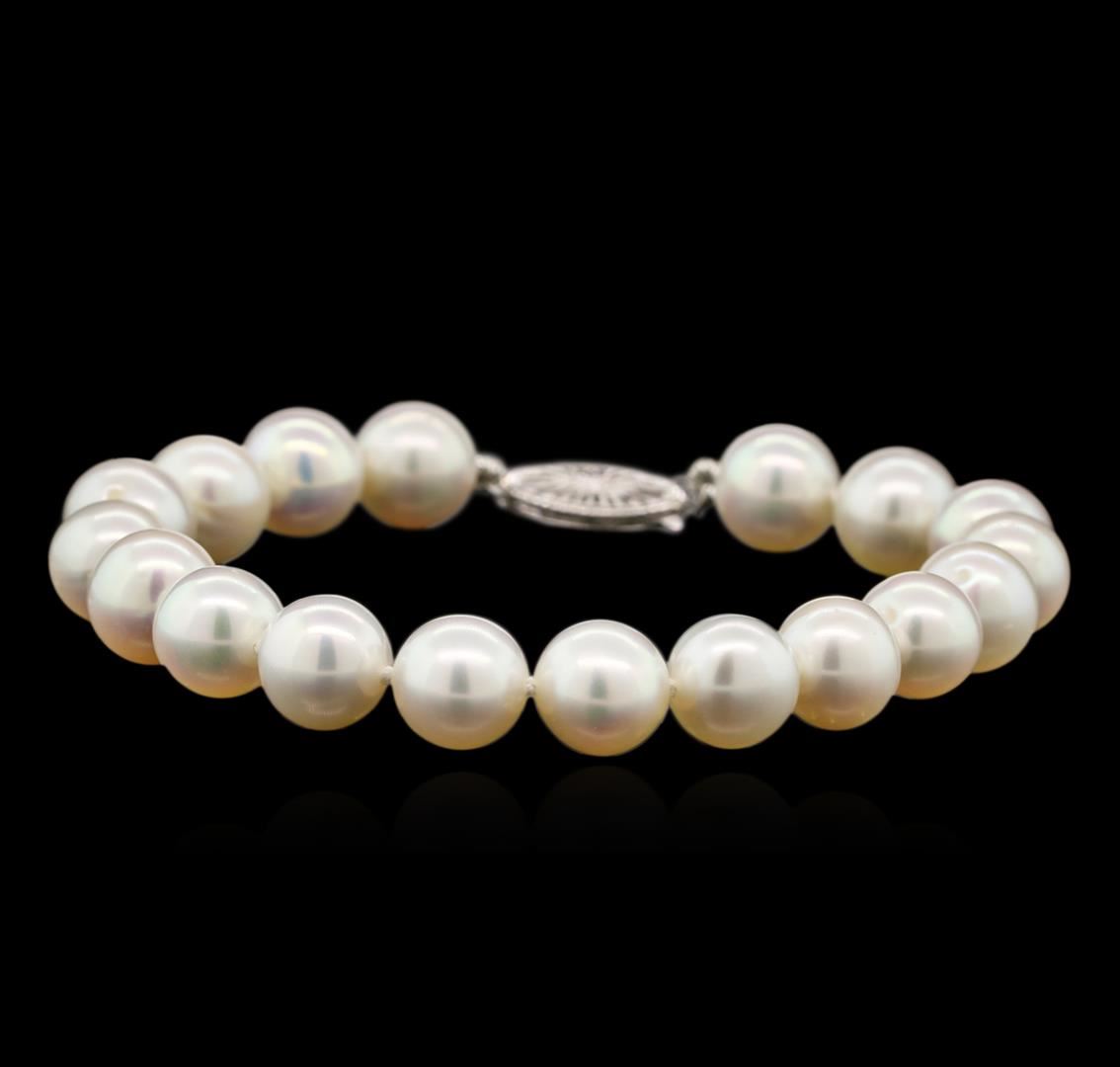 One bracelet featuring: 14KT white gold weighing 16.63 grams containing 8mm fresh water pearls.