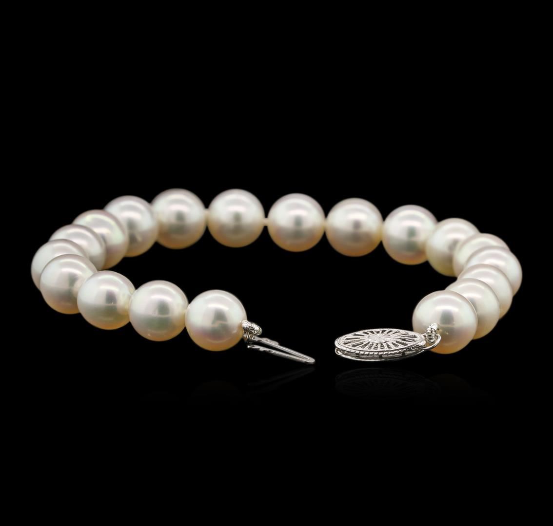 One bracelet featuring: 14KT white gold weighing 20.33 grams containing 8mm fresh water pearls.