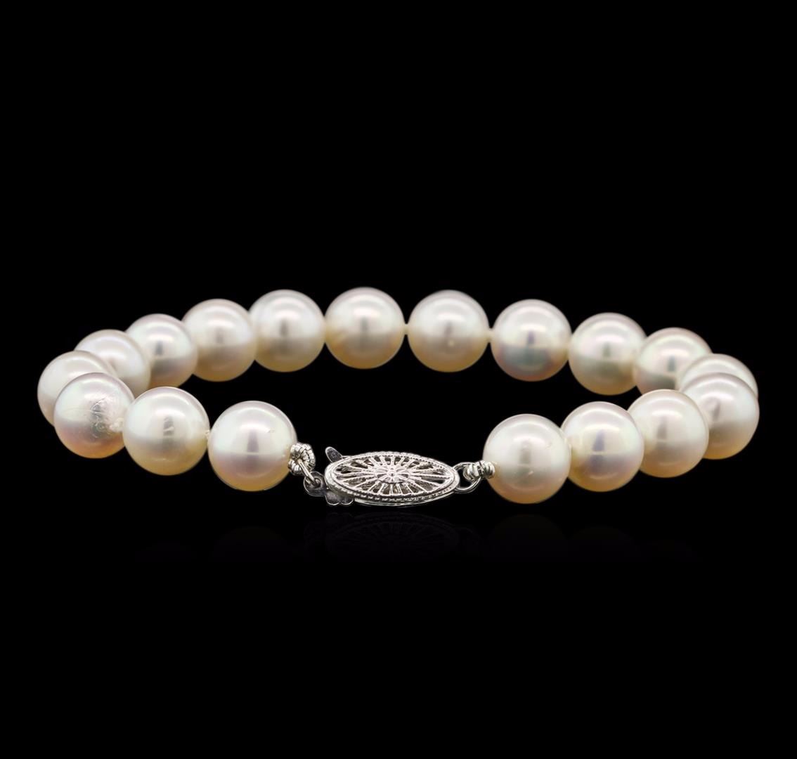 One bracelet featuring: 14KT white gold weighing 16.63 grams containing 8mm fresh water pearls.