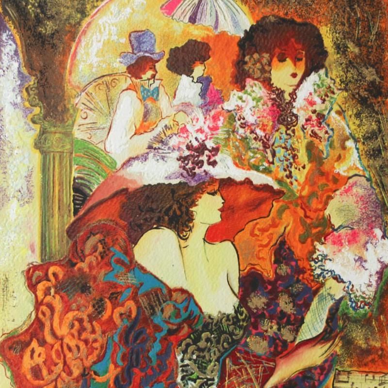 "Friendship" is a limited edition Serigraph on Paper by Sergey Kovrigo. The piece is numbered, hand signed by the artist, and come with a letter of authenticity. Measures approximately 18.5" x 13".