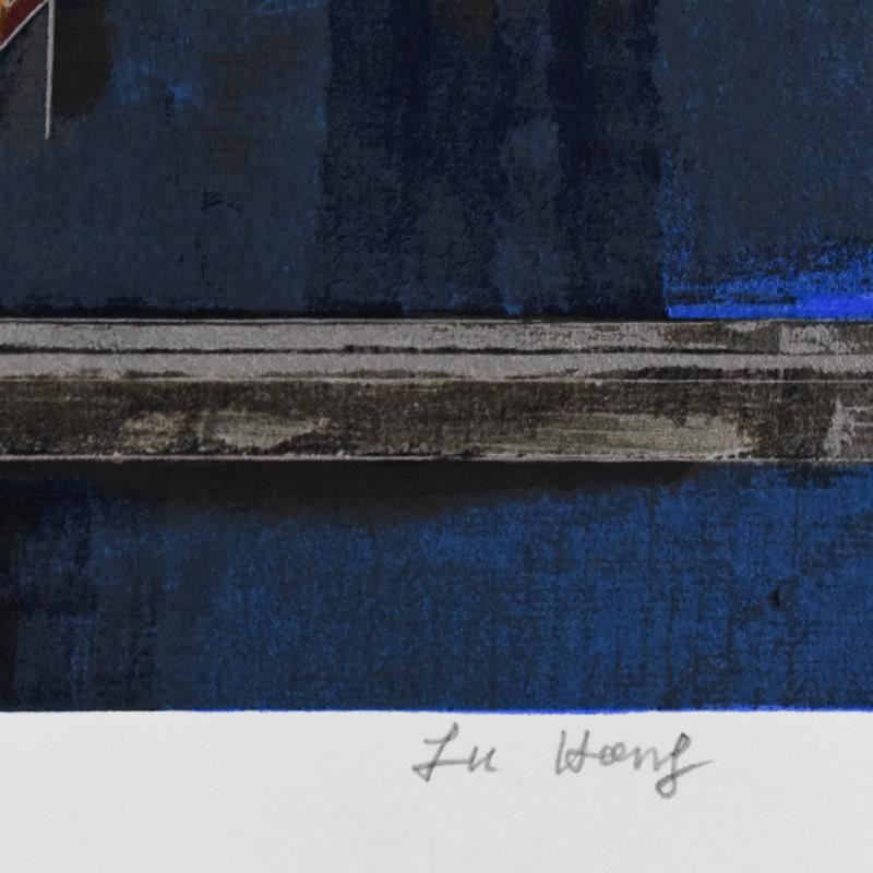 Full Moon and Water by Hong, Lu. "Full Moon and Water" is a limited edition serigraph on paper by Lu Hong, numbered and hand signed by the artist. Includes Letter of Authenticity. Measures approx. 34" x 38" (with border), 29" x 29" (image).