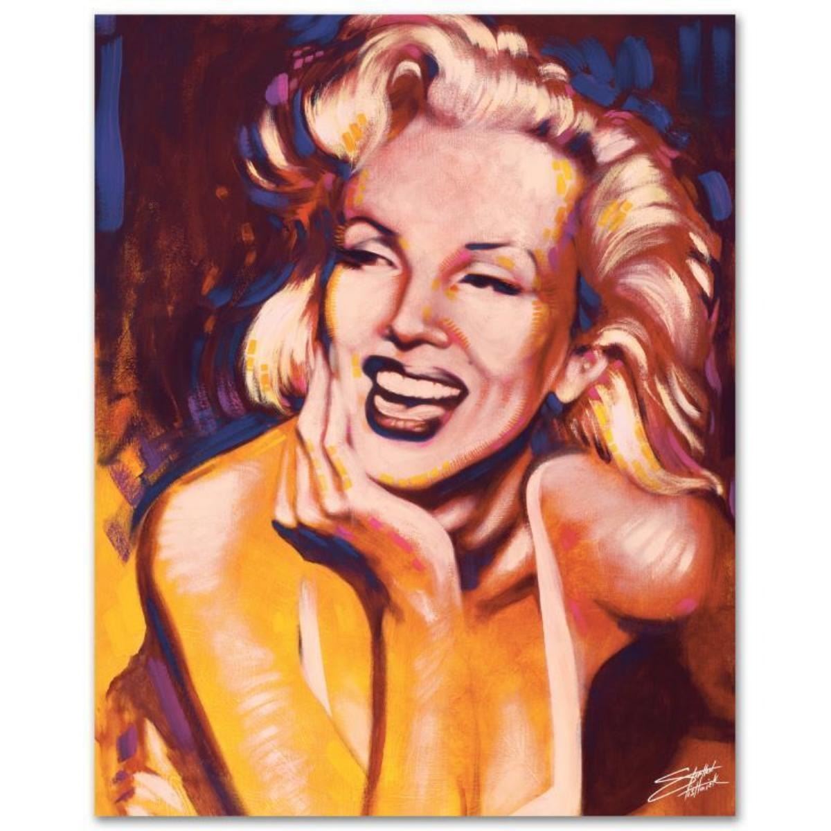 With bright colors and expressive lines, Stephen Fishwick puts a unique spin on pop culture portraits. "Fun - Marilyn" is a limited edition giclee on stretched canvas, numbered and bears the artist's authorized signature. This piece comes gallery wrapped! Includes Letter of Authenticity. Measures approx. 16" x 20" (image). This item requires special handling and may have a longer than usual turnaround.