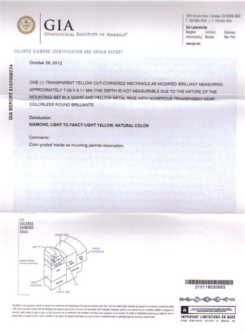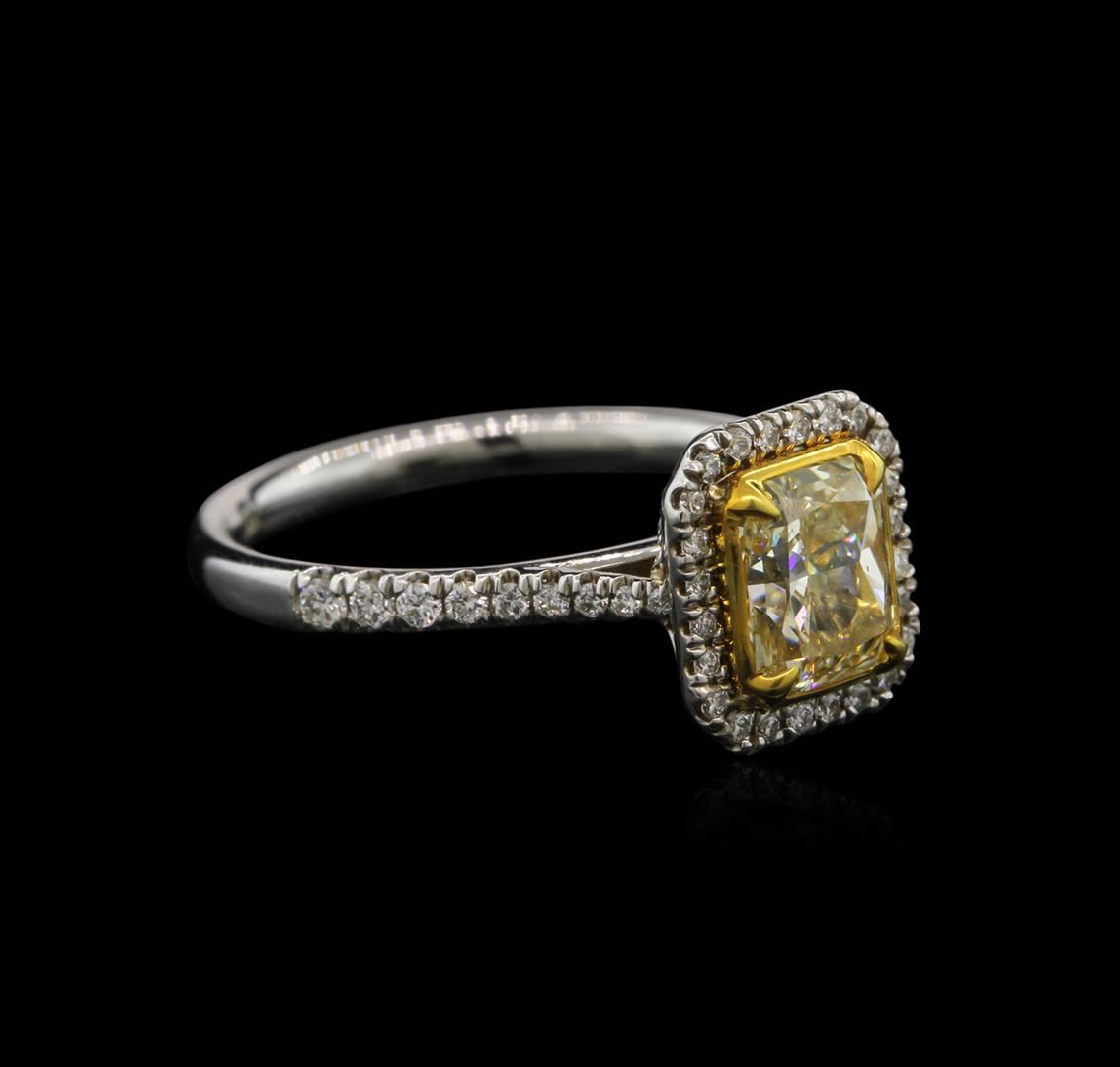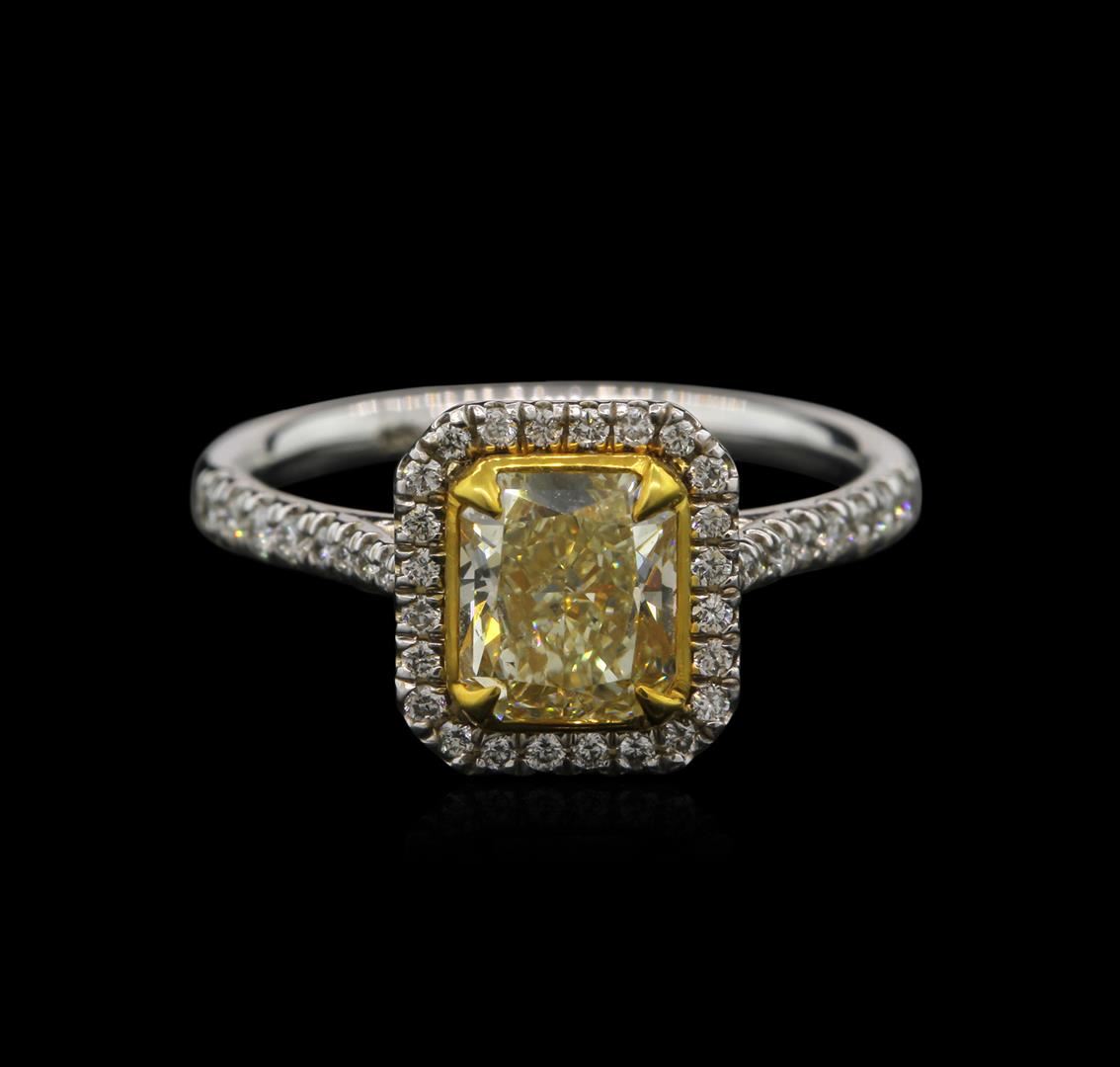 One ring featuring: 18KT white and yellow gold weighing 3.80 grams containing one fancy yellow diamond center stone with a total weight of 1.36ct and white diamond side stones with a total weight of 0.30ct. GIA Appraised.