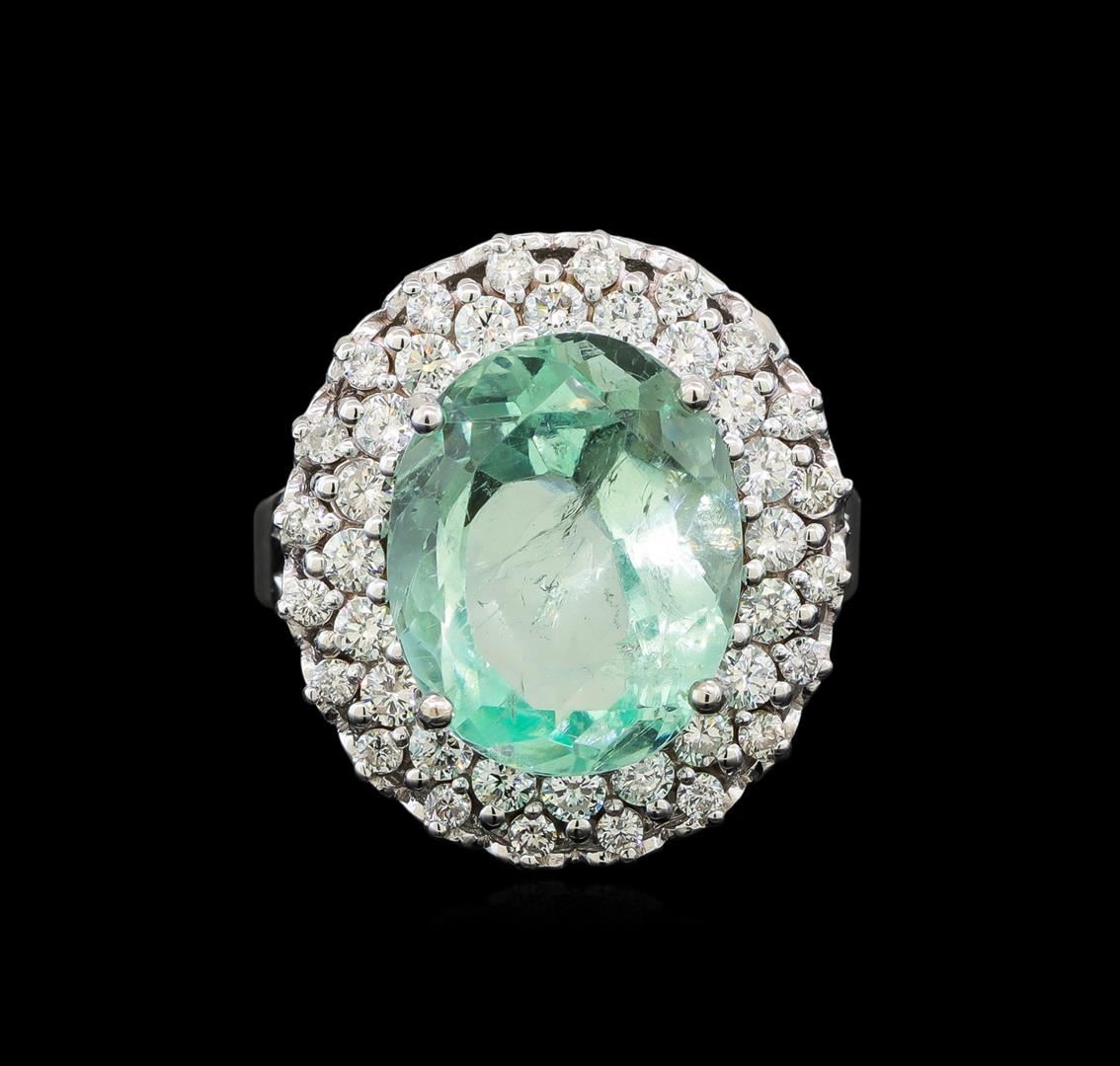 One electronically tested 14KT white gold lady's cast fashion ring with a split shank double basket halo with a bright polish finish. The featured lady's ring has a shank measuring 2.67 millimeters wide. Identified with markings of '14K'. Condition is new, good workmanship. Containing: One prong set oval modified brilliant cut natural emerald, measuring 15.46 x 12.34 x 8.78mm, (depth est.) approximate weight of 9.25ct., clarity is slightly included, light, moderately strong, green color, (GIA G 3/4), cut is fair. Transmitting light with a minimum of distortion, transparent. Clarity enhanced. Colored gemstones are presumed to have been subjected to commonly used enhancement processes. Graded loose prior to setting in the GIA Laboratory, Report #1176664620. Twenty prong set round brilliant cut diamonds, measuring 2.40 - 2.30 x 1.41mm (depth est.) approximate total weight of 20 Stones = 0.94ct. Graded in the setting. Clarity SI-1 to I-1. Color: H - I Cut Good Twenty prong set round brilliant cut diamonds, measuring 1.70 - 1.60 x 0.99mm (depth est.) approximate total weight of 20 Stones = 0.32ct. Graded in the setting. Clarity SI-1 to SI-2. Color: H - I Cut Good. Total Weight of Colored Stones 9.25ct.. Total Weight of Diamonds 1.26ct.. Total Weight of Ring 11.40gm. GAS Appraised at $11,865.00.