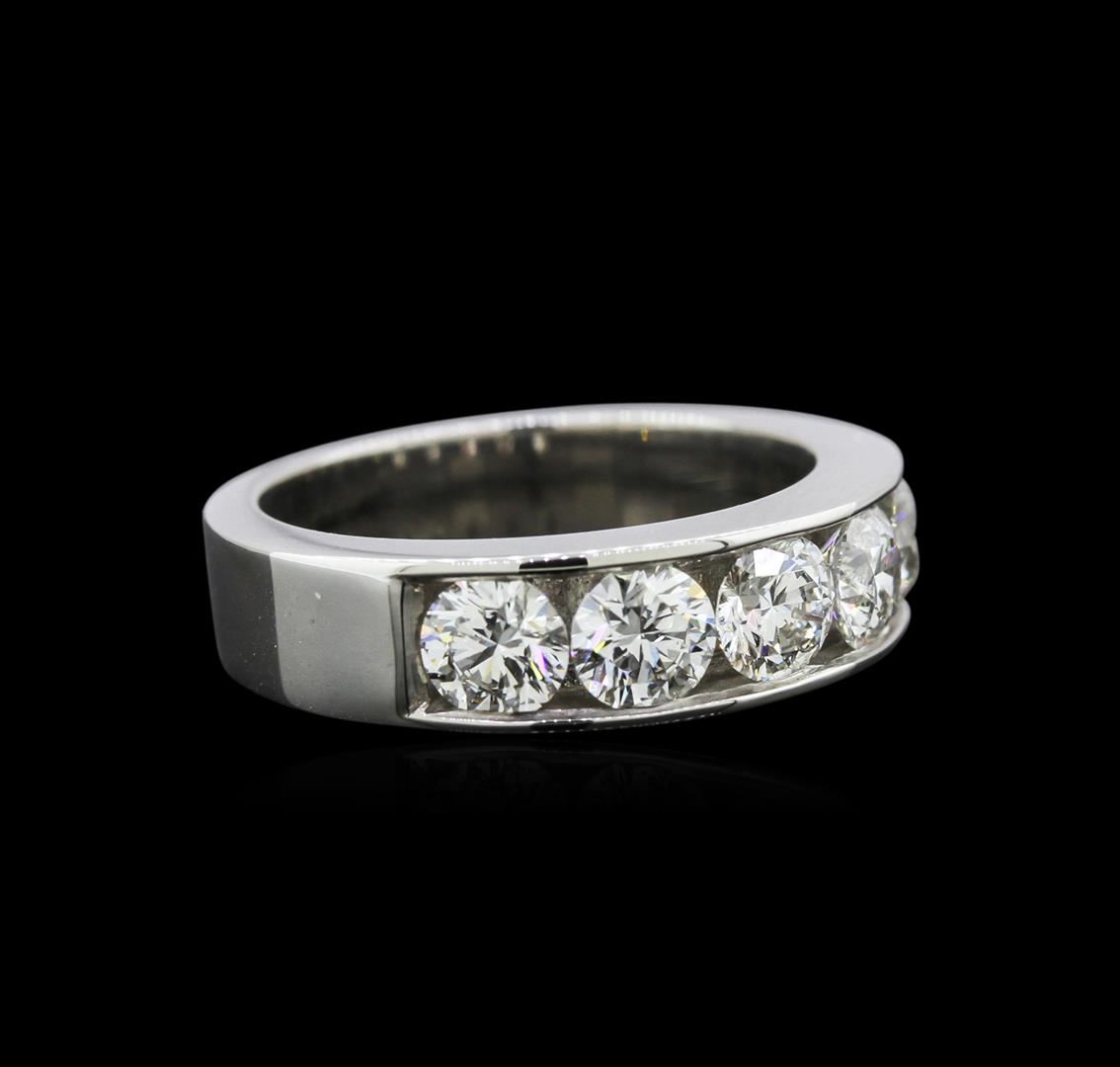 One electronically tested 14KT white gold ladies cast diamond wedding band with a bright polish finish. Identified with markings of "14K". Condition is new. Containing: One channel set round brilliant cut diamond, measuring 4.48 - 4.45 x 2.76mm (depth est.) exact weight 0.33ct. Clarity: VVS-1. Color: E, Cut is Excellent. GIA Gem Trade Laboratory Report # 1156670587. One channel set round brilliant cut diamond, measuring 4.41 - 4.45 x 2.75mm (depth est.) exact weight 0.32ct. Clarity: VVS-1. Color: E, Cut is Excellent. GIA Gem Trade Laboratory Report #511929565. One channel set round brilliant cut diamond, measuring 4.49 - 4.43 x 2.74mm (depth est.) exact weight 0.33ct. Clarity: VVS-1. Color: E, Cut is Excellent. GIA Gem Trade Laboratory Report #6147370363. One channel set round brilliant cut diamond, measuring 4.49 - 4.45 x 2.72mm (depth est.) exact weight 0.32ct. Clarity: VVS-1. Color: E, Cut is Excellent. GIA Gem Trade Laboratory Report #21068559816. One channel set round brilliant cut diamond, measuring 4.48 - 4.49 x 2.75mm (depth est.) exact weight 0.34ct. Clarity: VVS-1. Color: E, Cut is Excellent. GIA Gem Trade Laboratory Report #2146968090. Total Weight of Diamonds 1.64ct. Total Weight of Wedding Band 6.70gm. GGL Appraised at $12,065.00.