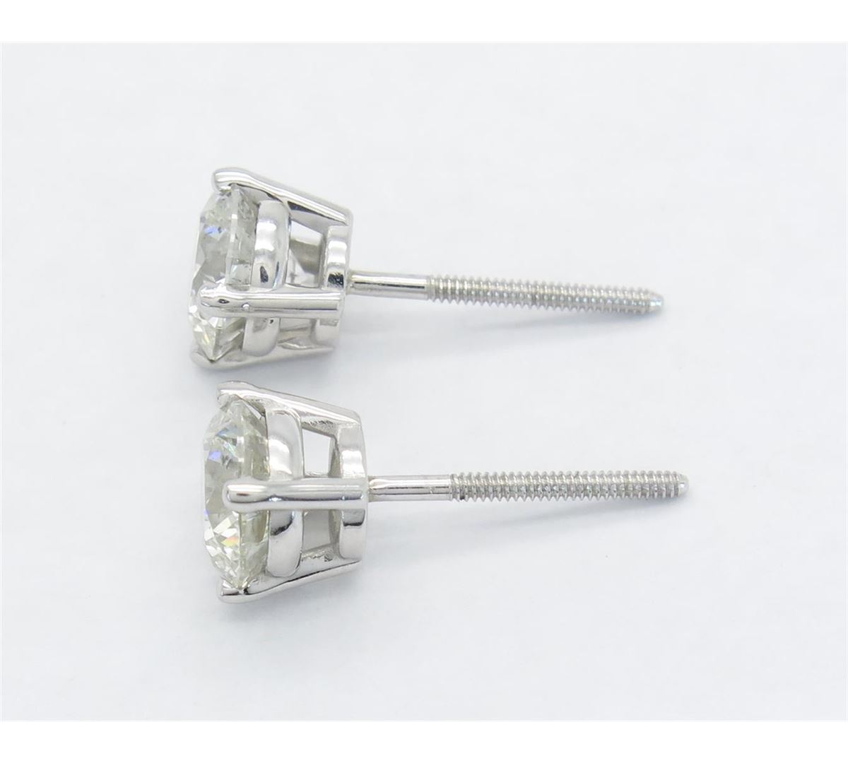 Two tested 14K white gold certified diamond stud earrings. Containing: 2 GIA Certified Round Brilliant Cut Diamonds, Size: 1.05CT and 1.06CT, Clarity: I1, Color: J-K. Total diamond weight: 2.11CTW. Weight of earrings: 1.82 grams. GIA Appraised.