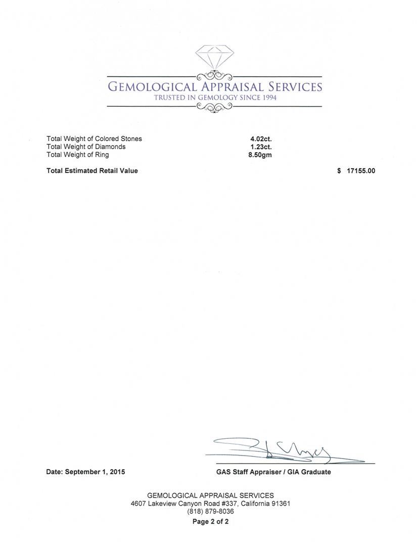 Not all Jewelry, watches or loose stones are appraised and the appraisals are provided for bidders only in certain instances at the discretion of SAA. Our appraisals are conducted by independent third-party appraisal firms. Such firms may be certified GIA Gemologists or have education in the industry or alternative certifications. Appraisals should be used for verification of gemstone and/or metal weight, size, and grade only, not actual value for resale or insurance purposes. Appraisal value should be not considered for actual value, as price varies greatly from retail locations and other merchants in different geographic locations. All Items auctioned by SAA should not be purchased with a view or expectation toward resale for appraisal price given, or to make a profit. The ultimate value for which an item can be resold may vary drastically from the appraisals listed by SAA.