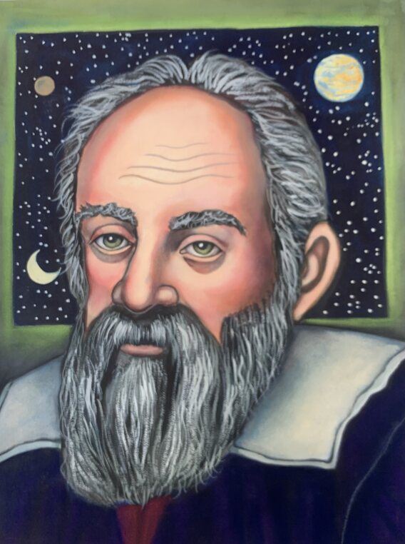 A pastel & watercolor portrait of Astronomer Galileo who first put the sun at the center of our Universe 24x18" on deckled fine art paper, by Anonymous