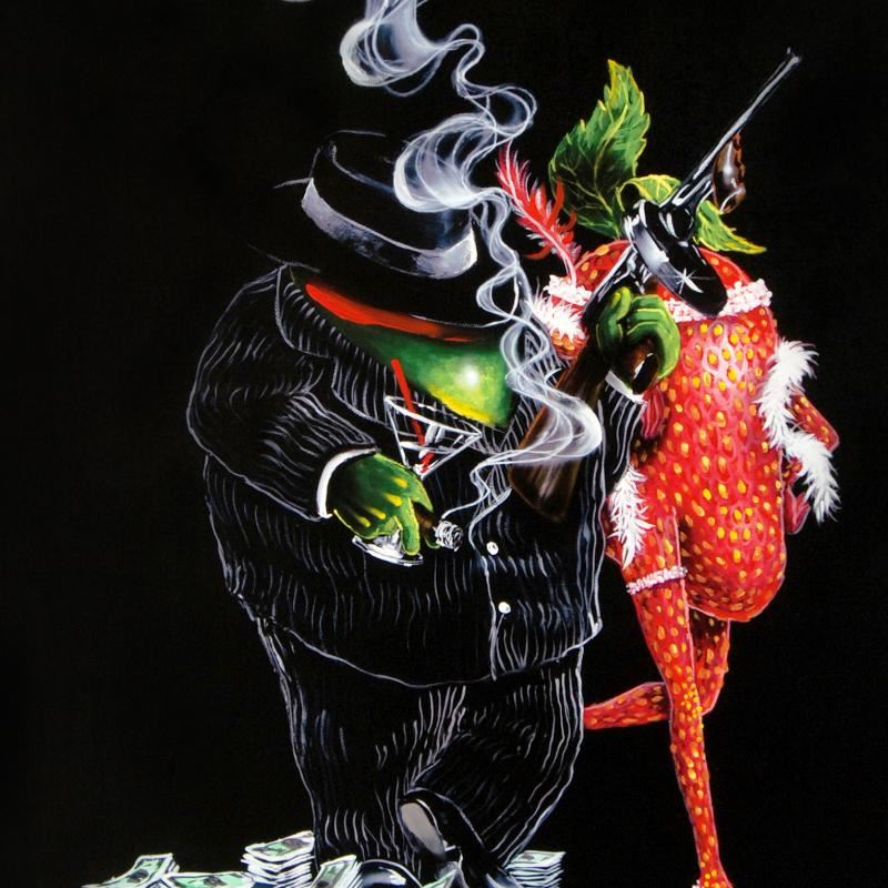 With unforgettable characters and undeniable charm, Michael Godard creates artworks that are sure to be the centerpiece of any room! "Gangster Love" is a limited edition giclee on stretched canvas, CS numbered and bears Godard's authorized signature! This piece comes gallery wrapped. Includes Certificate of Authenticity! Measures approx. 28" x 35" (image).