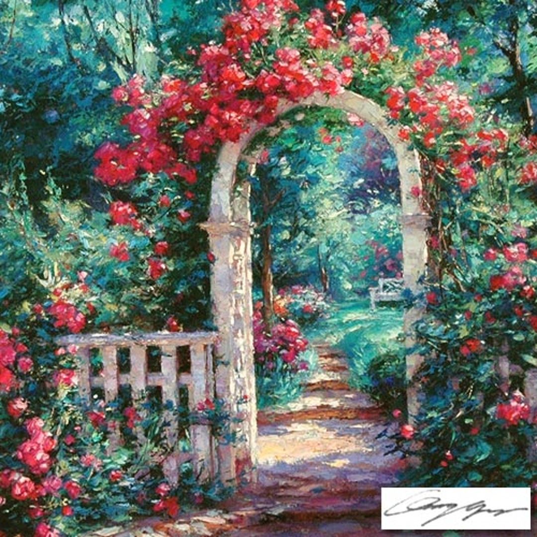 Garden Arch is a Limited Edition Giclee on Canvas by Cao Yong. Numbered and Hand Signed with Artist Certificate of Authenticity! Measures appx. 24 x 18 (image).