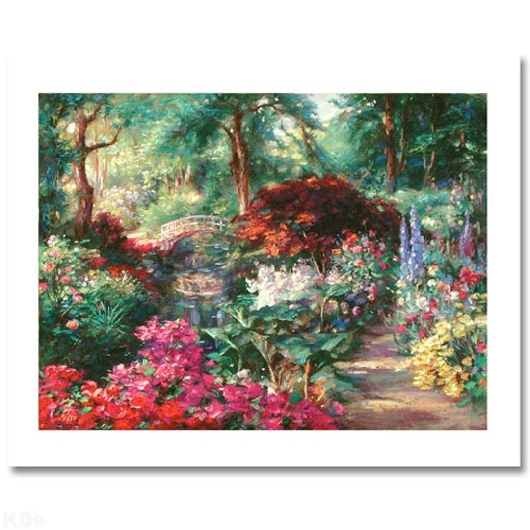 Garden Bridge is a Limited Edition Giclee on Canvas by Cao Yong. Numbered and Hand Signed with Artist Certificate of Authenticity! Measures appx. 24 x 18 (image).