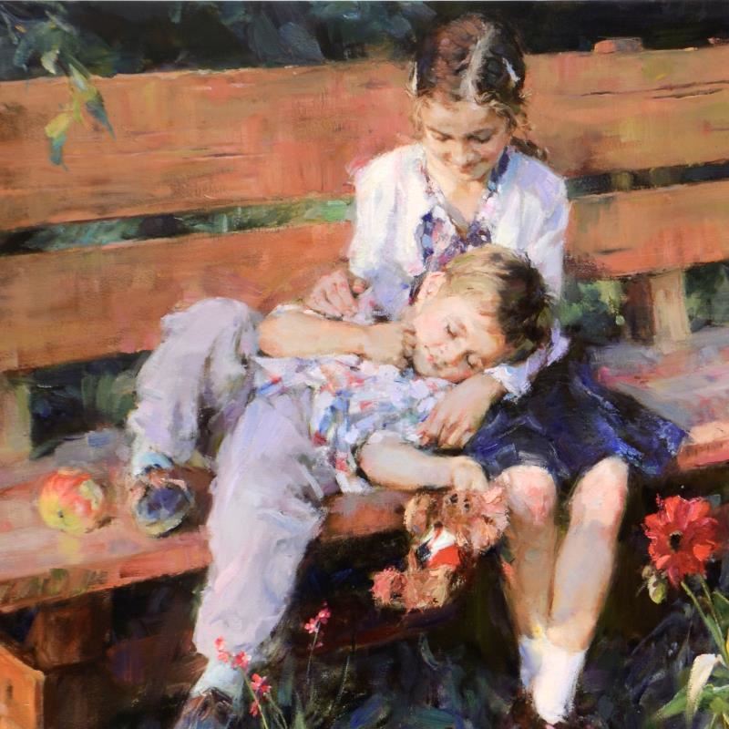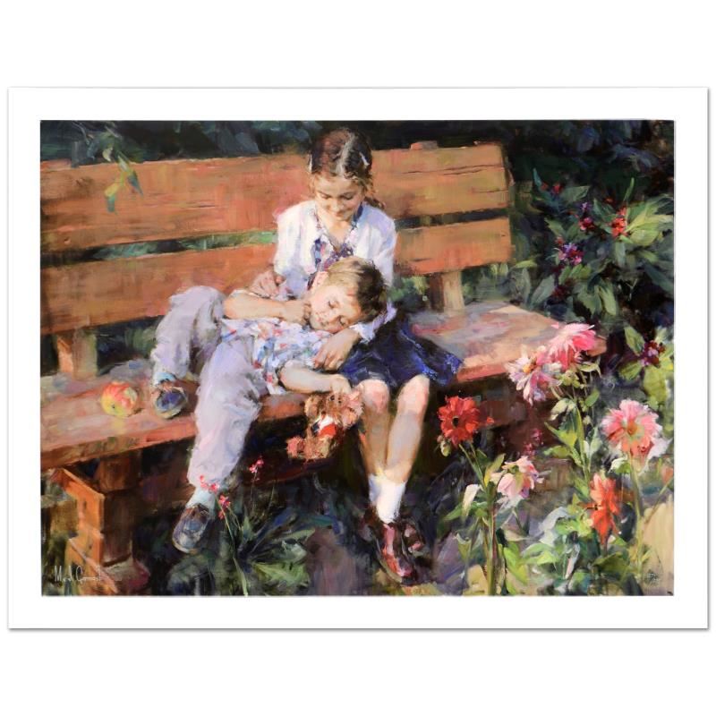 "Garden Treasures" is a limited edition hand embellished giclee on canvas by the husband and wife team, Mikhail and Inessa Garmash! This piece is numbered and hand signed by the artists! Includes Certificate of Authenticity! Measures approx. 40" x 30" (image).
