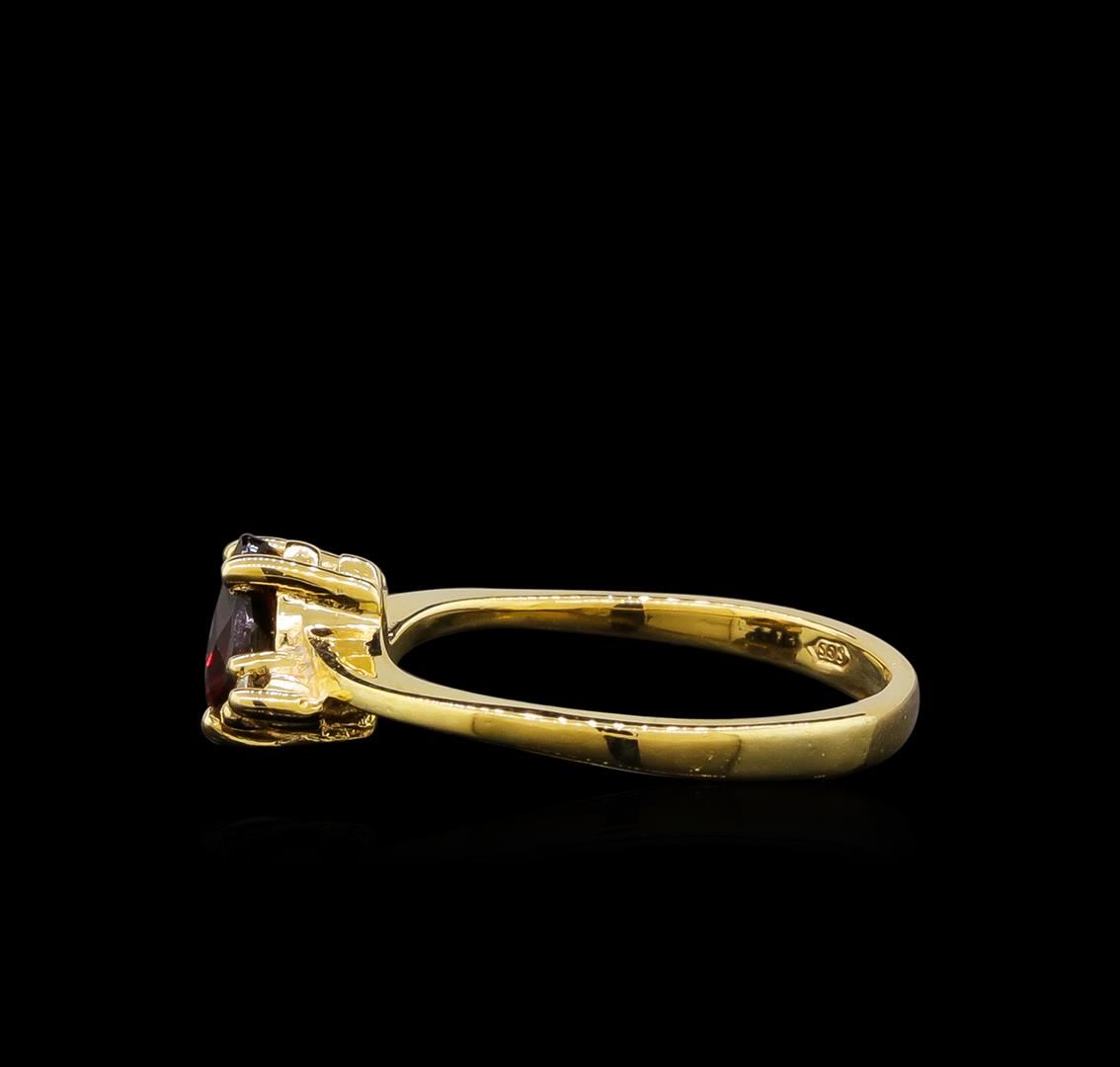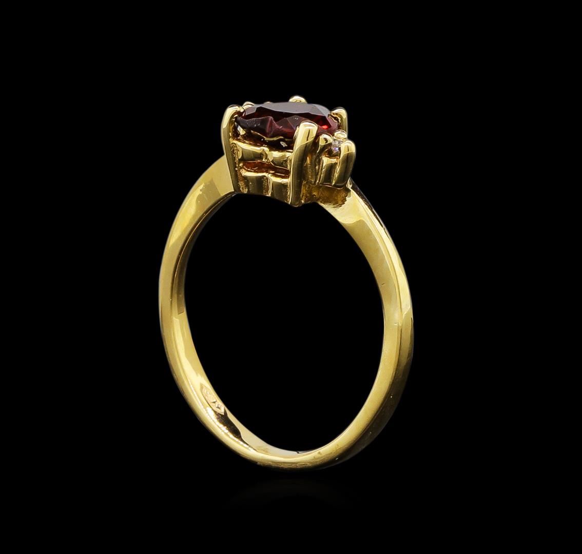 Garnet and Diamond Ring - 14KT Yellow Gold. Total Weight: 2 grams.