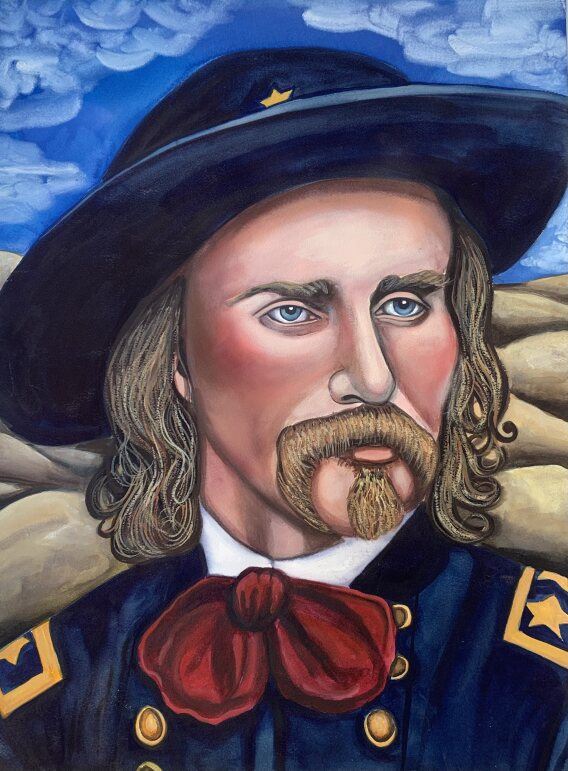 A pastel & watercolor portrait of ill-fated General George Armstrong Custer. 24x18" on deckled fine art paper, by Anonymous