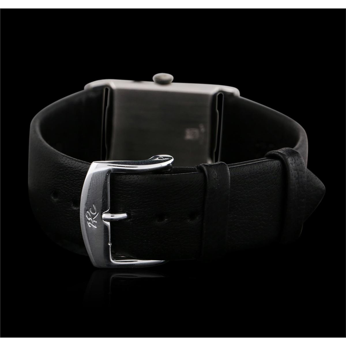 One cast manufactured 14K white gold Jules Jurgensen diamond mens wrist watch with mechanical movement. Case and Lugs: 14K white gold, diamond bezel, acrylic crystal, measures 24mm x 21mm. Case signed "14K". Dial: silver in color with baton markers and matching hands. Containing: Eighteen prong set single cut diamonds, measuring 1.50 - 1.50 x 0.90mm (depth est.) approximate total weight of 18 Stones = 0.22ct. Clarity: VS-2. Color: G. All colored gemstones are graded in the mounting, unless otherwise stated. Total Weight of Diamonds 0.22ct. Total Weight of Watch 17.50 grams.
