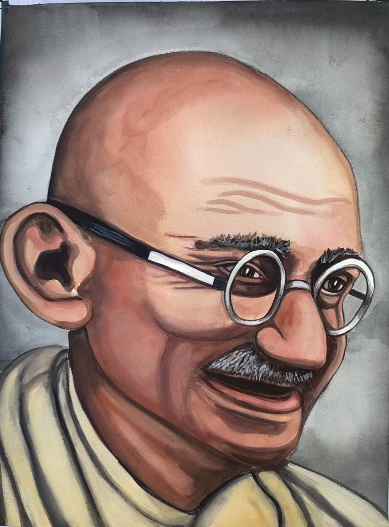 A pastel & watercolor portrait of Mahatma Ghandi 24x18" on deckled fine art paper, by Anonymous