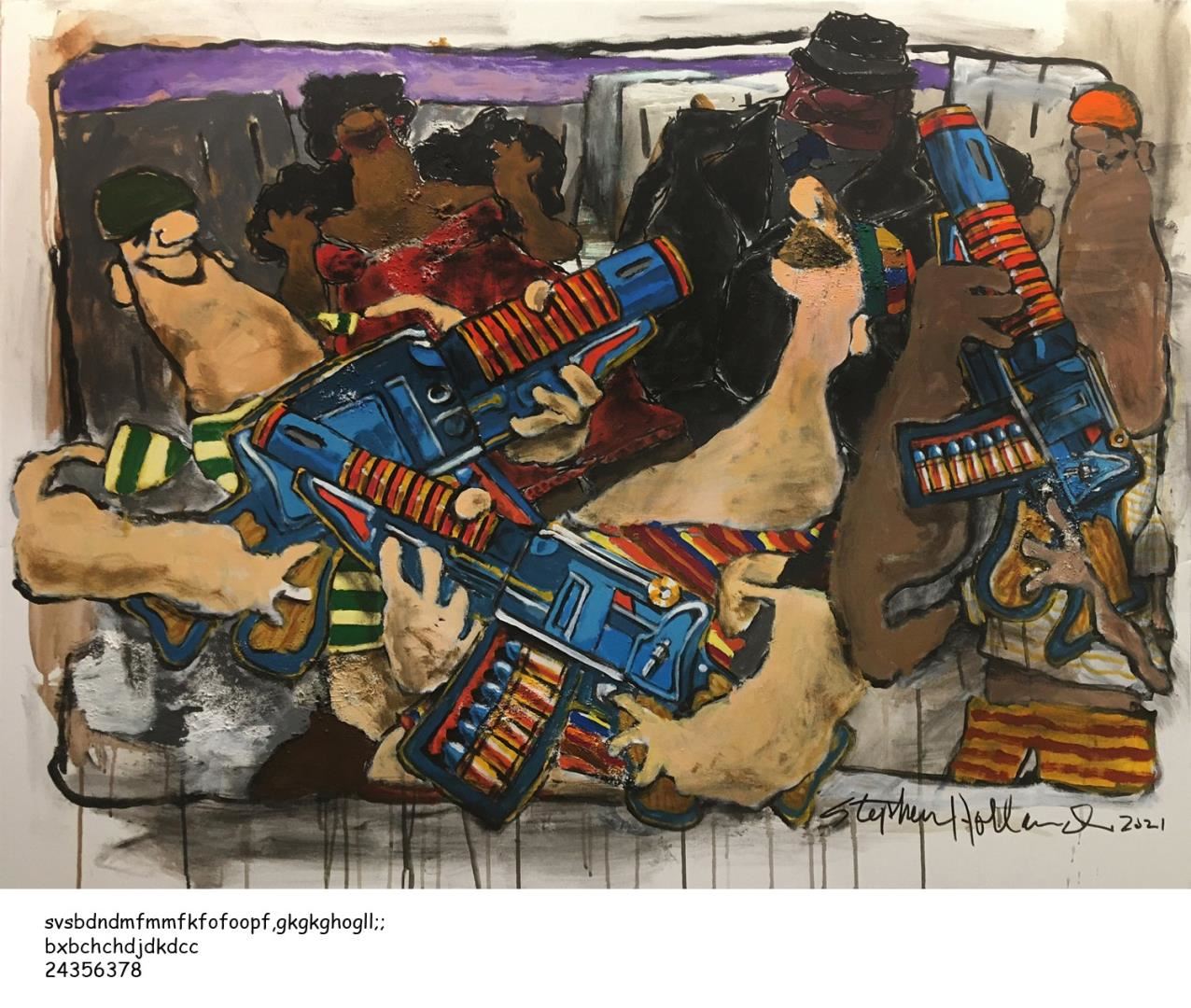 Girls wanna have fun and Guys wanna play with guns, artist Stephen Holland about his childhood in this eclectic opus 36x48" original acrylic on canvas w/COA