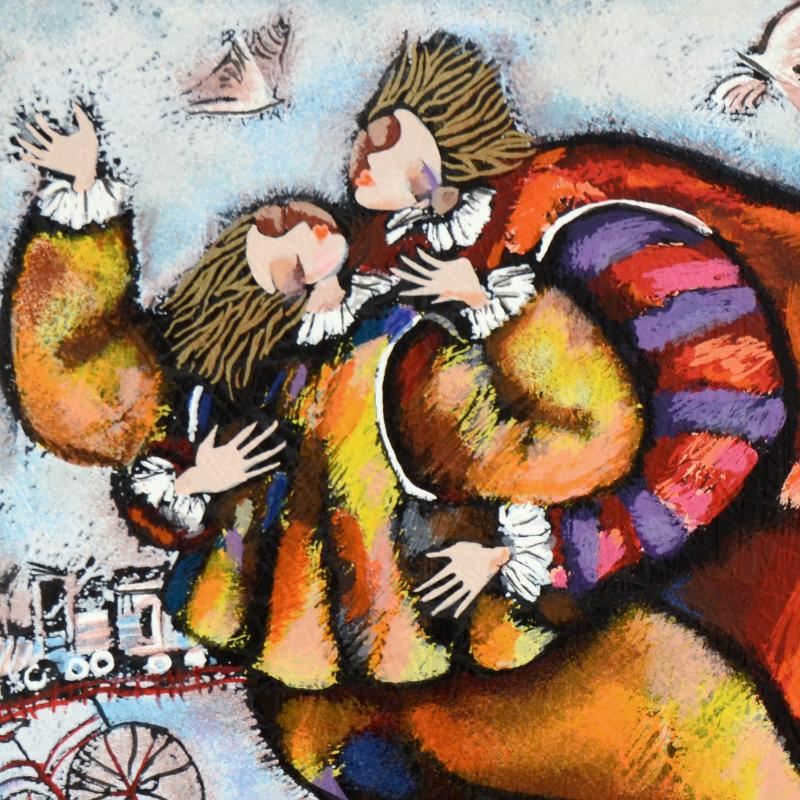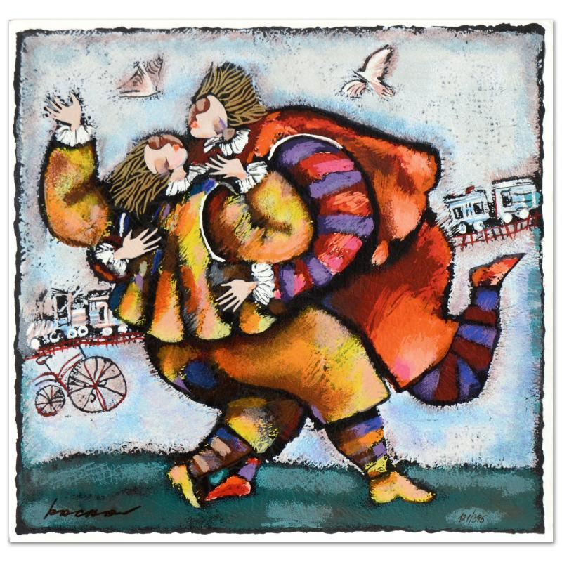 "Give Me a Kiss" is a limited edition serigraph on paper by Michael Kachan, numbered and hand signed by the artist! Includes certificate of authenticity! Measures Approx: 12" x 11.5" (image).