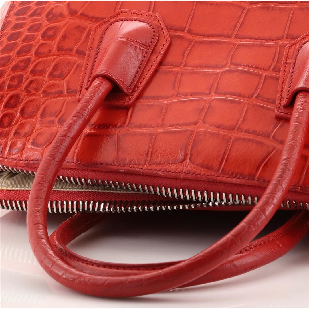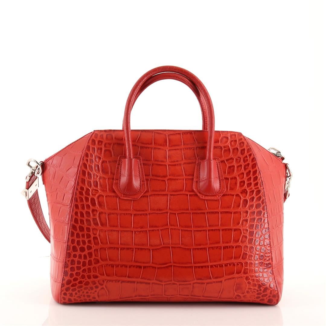 One Givenchy Antigona Bag Crocodile Embossed Leather Medium. Item is sold AS-IS. All available information is listed in the description and shown in the photo. Givenchy Antigona Bag Crocodile Embossed Leather Medium. Creasing, light wear and scuffs on exterior and strap, small mark on side, cracking on rear handle wax edges. Pilling on zipper tape, minor wear and marks in interior, scratches on hardware. 78848