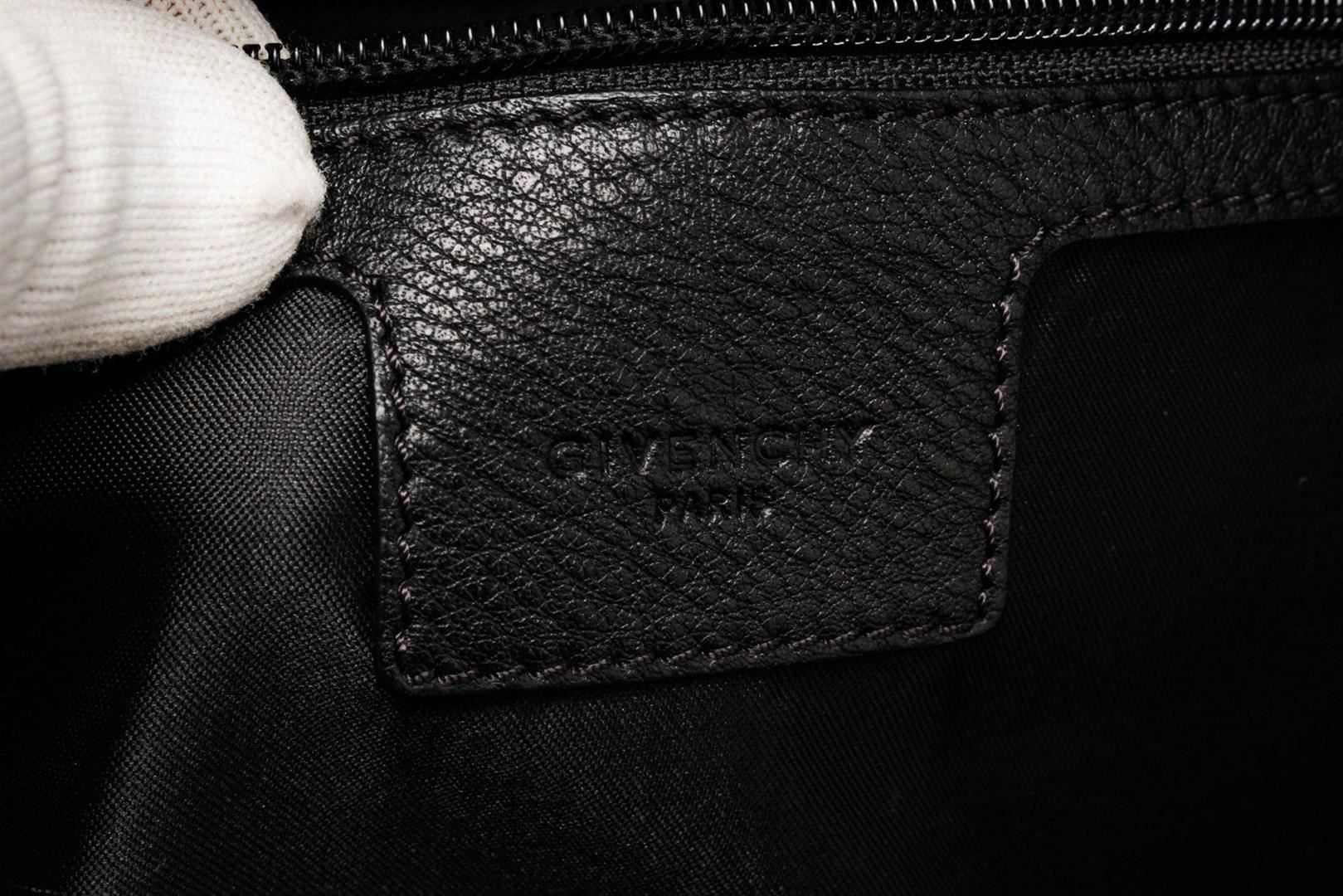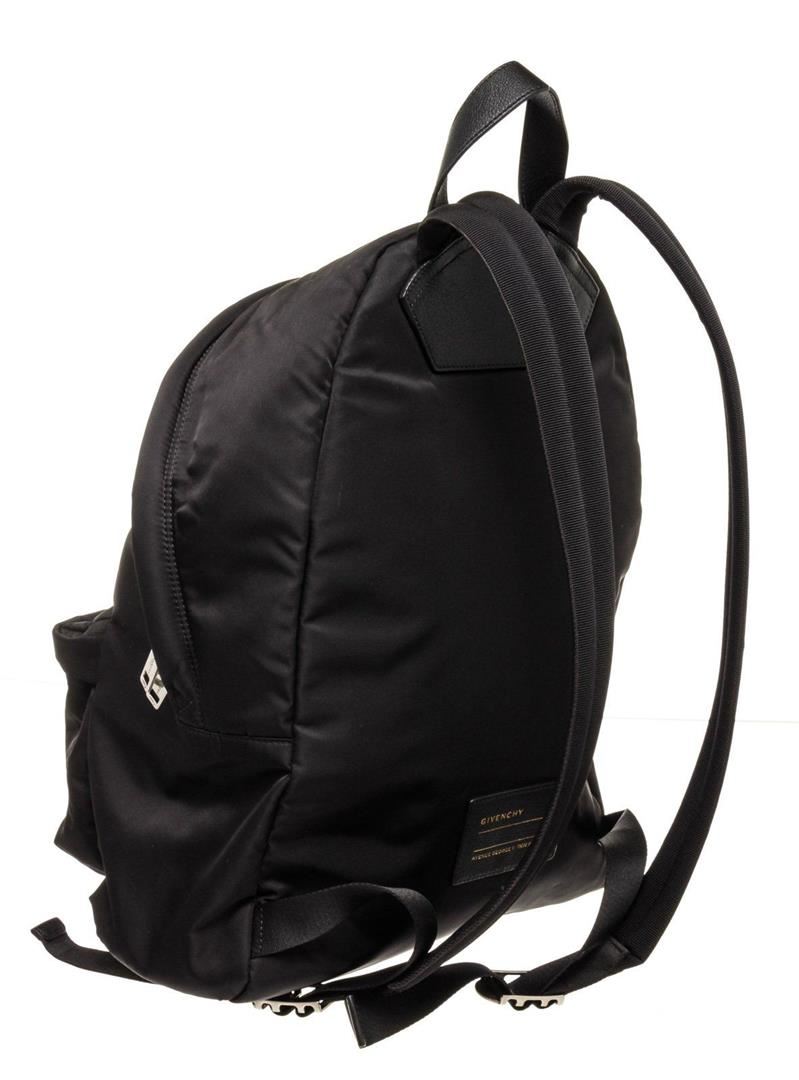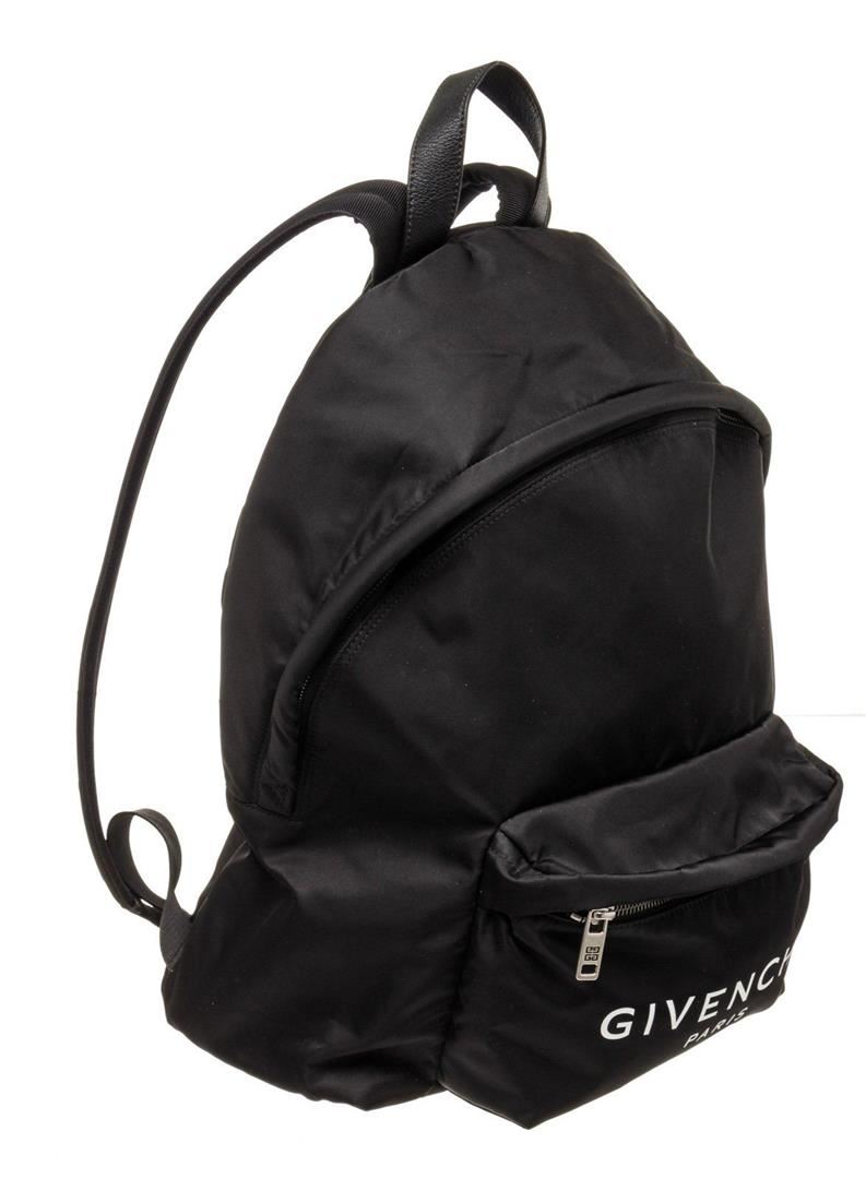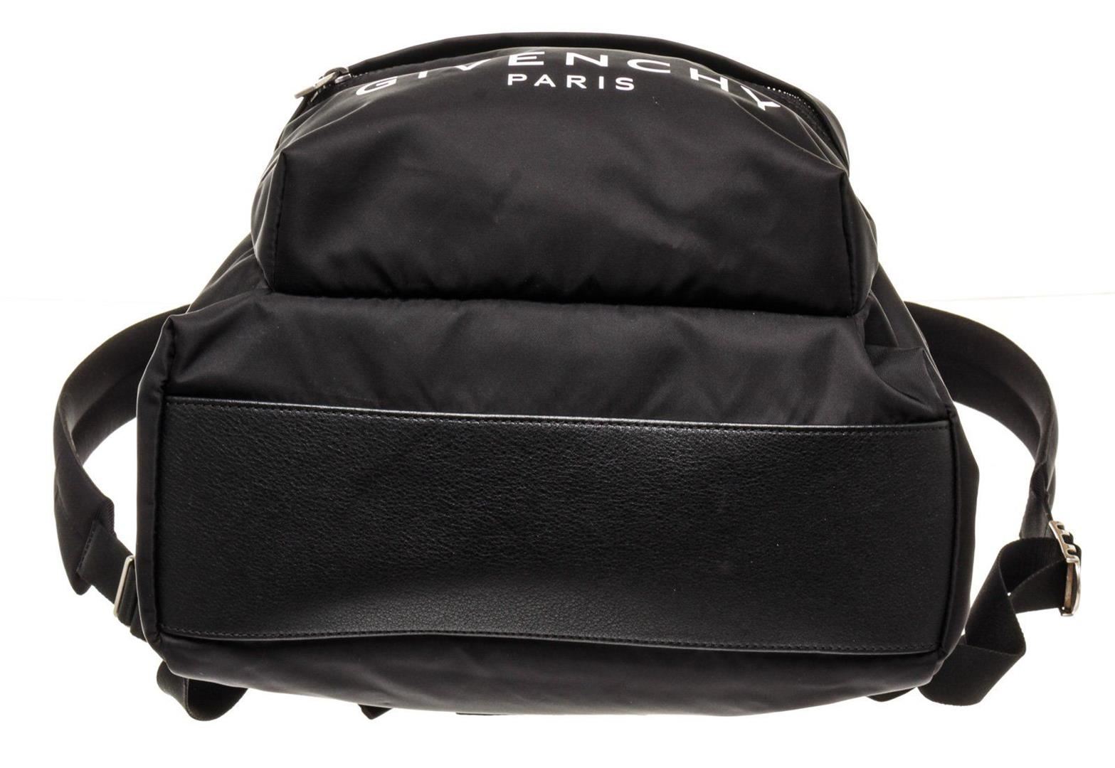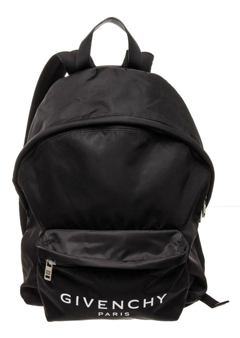 Givenchy Black Leather Logo Backpack Bag with leather, gold-tone hardware, trim leather, interior slip pockets, shoulder strap and zipper closure.