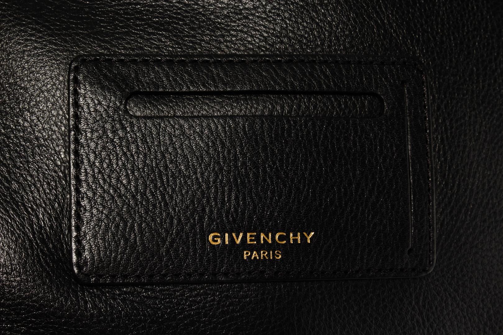 One Givenchy Black Leather Logo Studs Backpack. Item is sold AS-IS. All available information is listed in the description and shown in the photo. Black leather Givenchy Logo backpack with silver-tone hardware, single flat handle, dual flat studded shoulder straps, tonal leather trim, single exterior zip pocket, tonal woven lining, single interior slip pocket and two-way zip closure at top. Height: 13.5" Width: 9.5" Depth: 3.25" Shoulder Strap Length: 13" Handle Drop: 2.5"